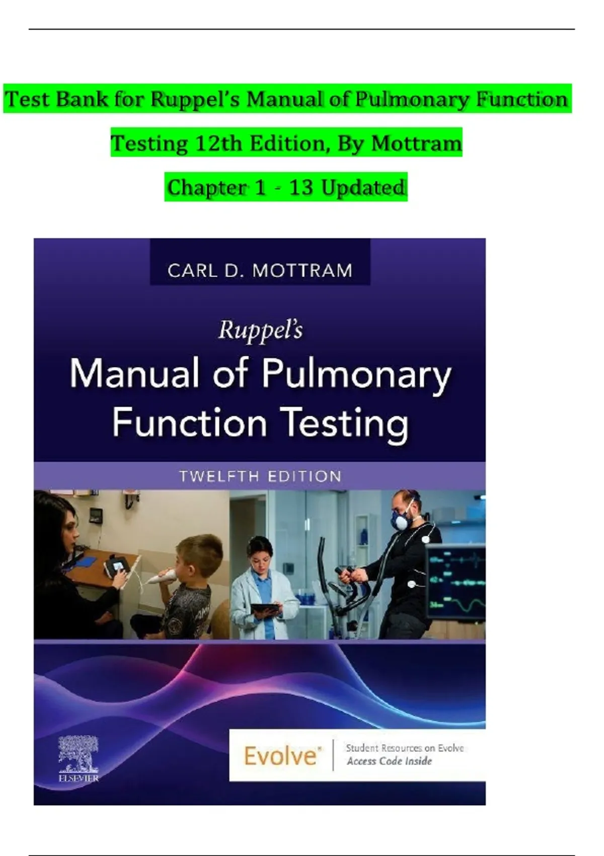 Test Bank for' Ruppel’s Manual of Pulmonary Function 'Testing 12th Edition, By Mottram;LATEST VERSION (2026)