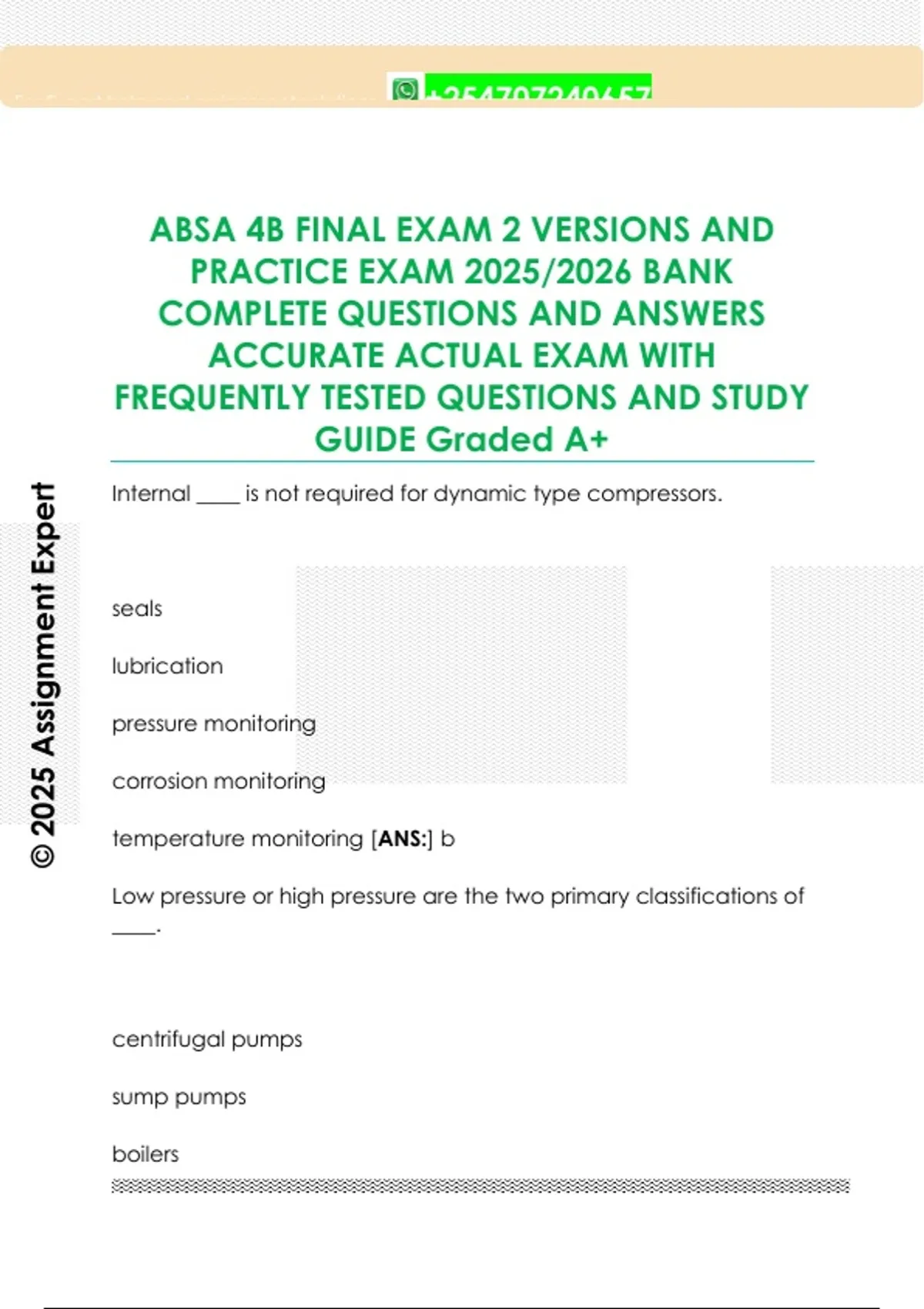 ABSA 4B FINAL EXAM 2 VERSIONS AND PRACTICE EXAM 2025/2026 BANK COMPLETE QUESTIONS AND ANSWERS ACCURATE ACTUAL EXAM WITH FREQUENTLY TESTED QUESTIONS AND STUDY GUIDE Graded A+