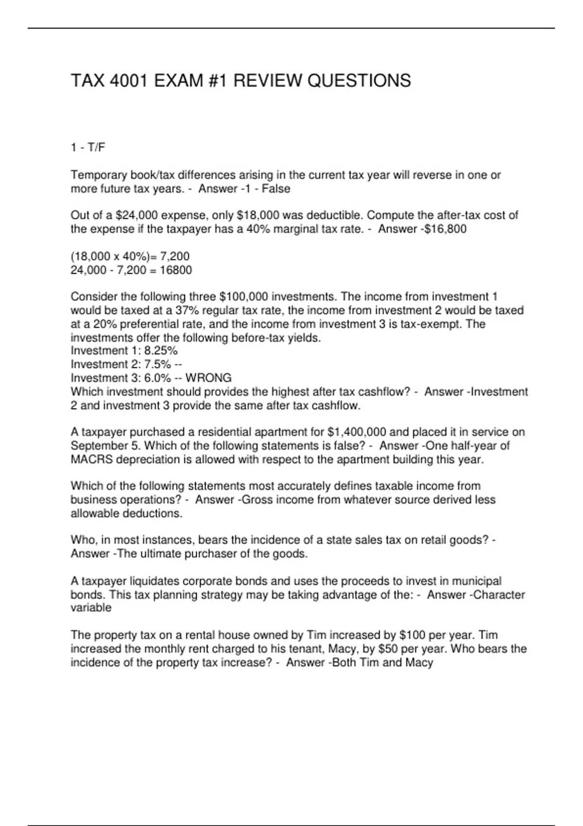 TAX 4001 EXAM #1 REVIEW QUESTIONS