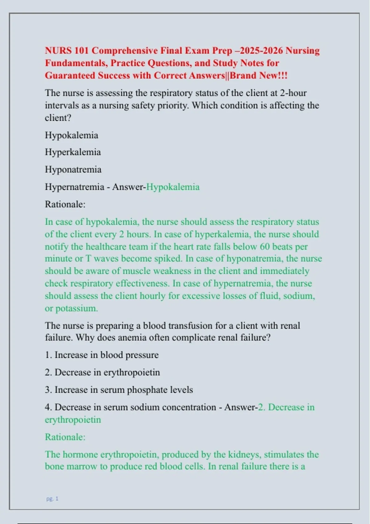 NURS 101 Comprehensive Final Exam Prep –2025-2026 Nursing