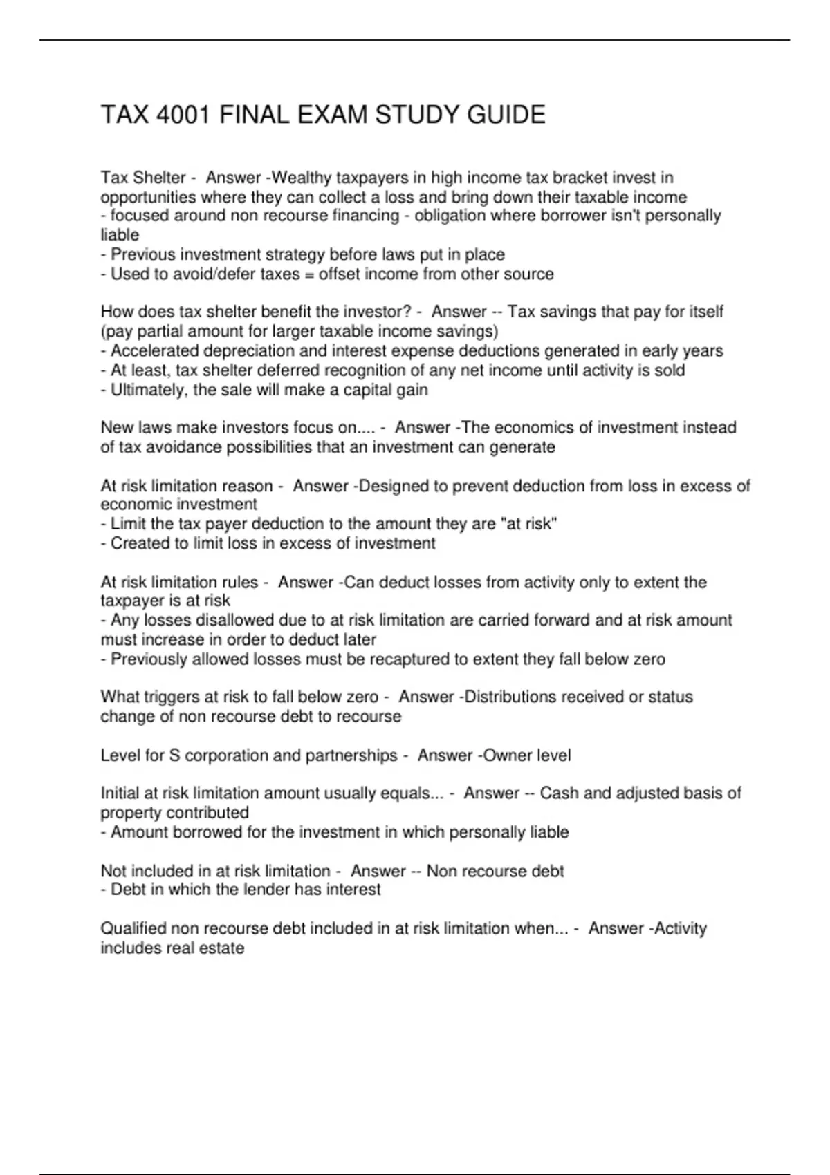 TAX 4001 FINAL EXAM STUDY GUIDE
