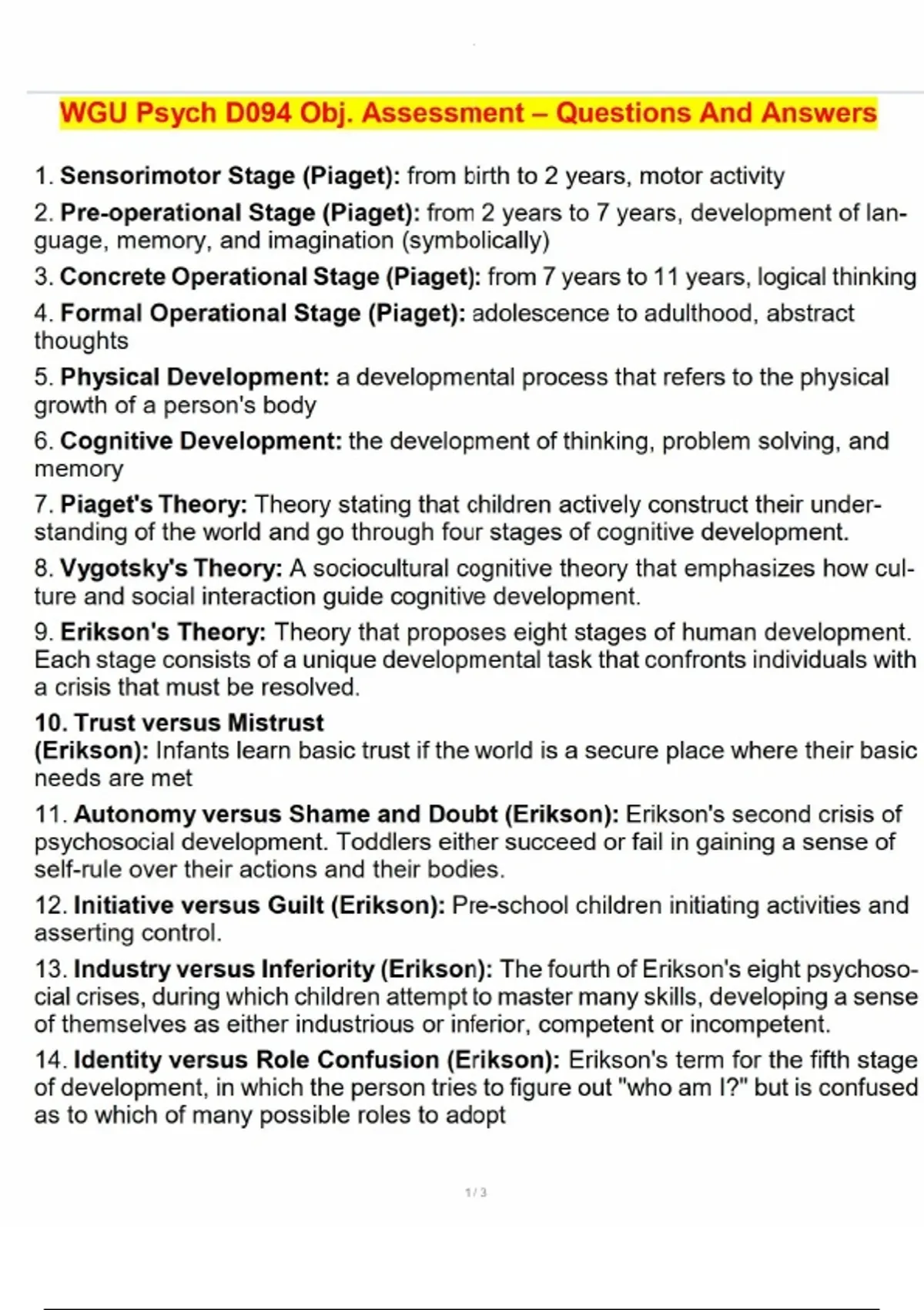 WGU Psychology D094 OBJ Assessment Questions and Answers Graded A+