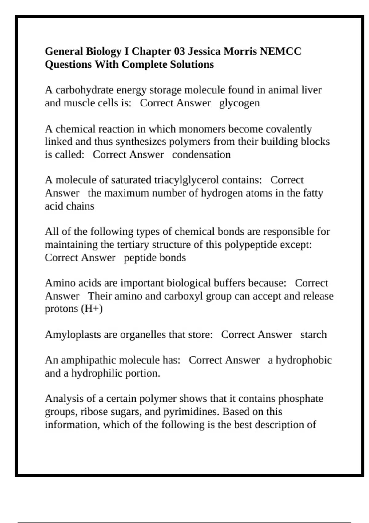 General Biology I Chapter 03 Jessica Morris NEMCC Questions With Complete Solutions
