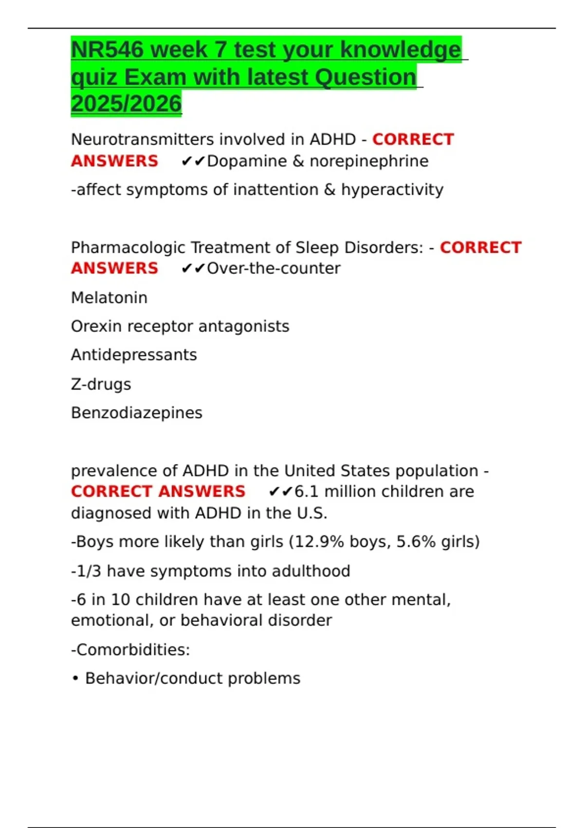 ADHD lifespan considerations - CORRECT ANSWERS
