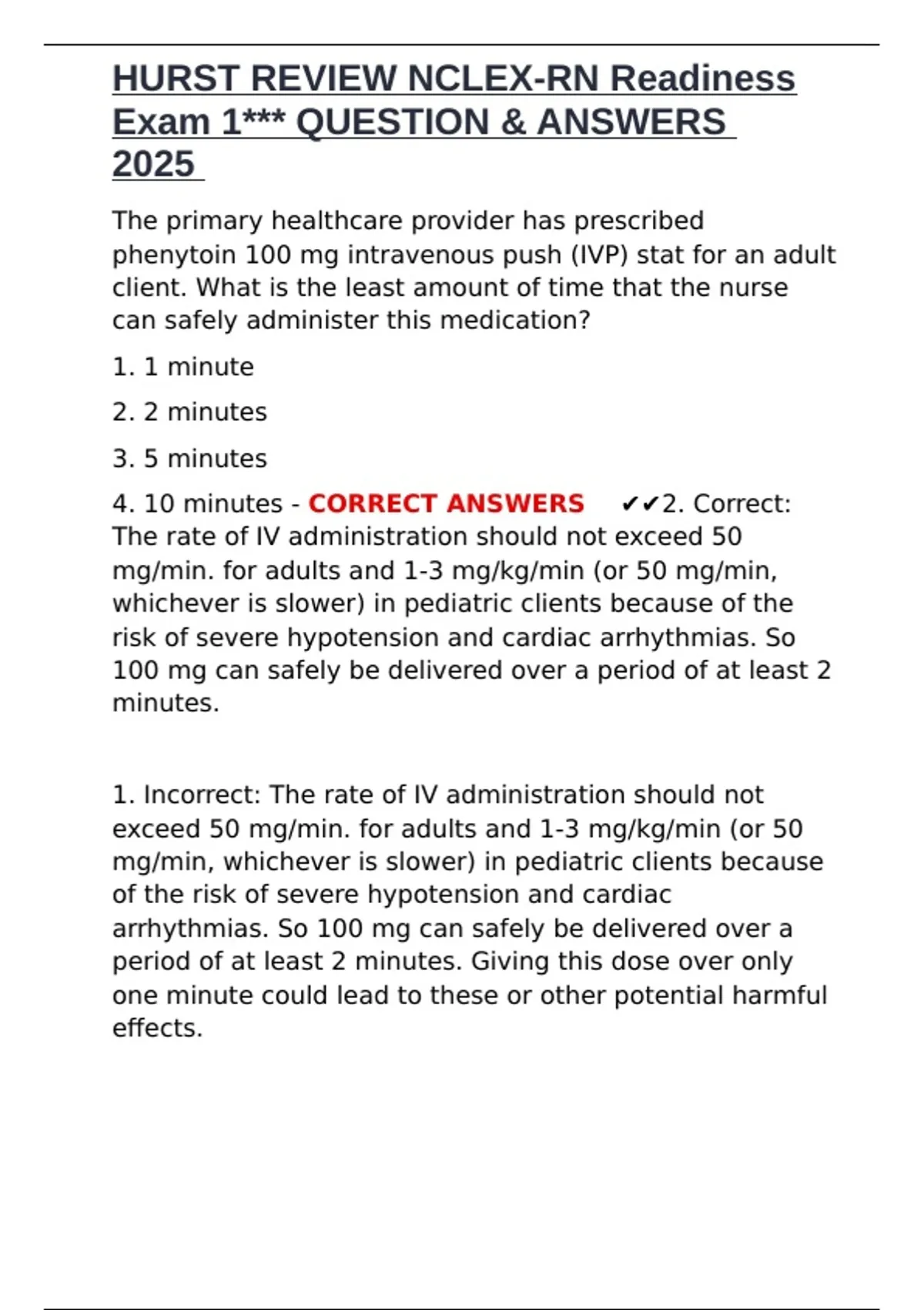 HURST REVIEW NCLEX-RN Readiness Exam 1 QUESTION & ANSWERS