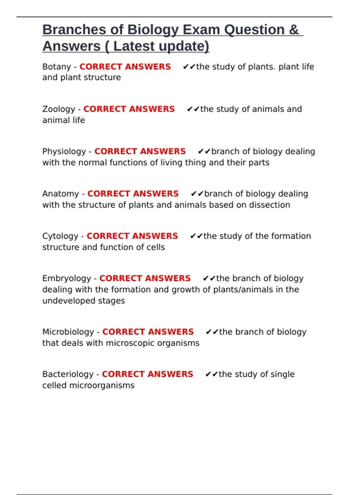 Microbiology - CORRECT ANSWERS ✔✔the branch of biology