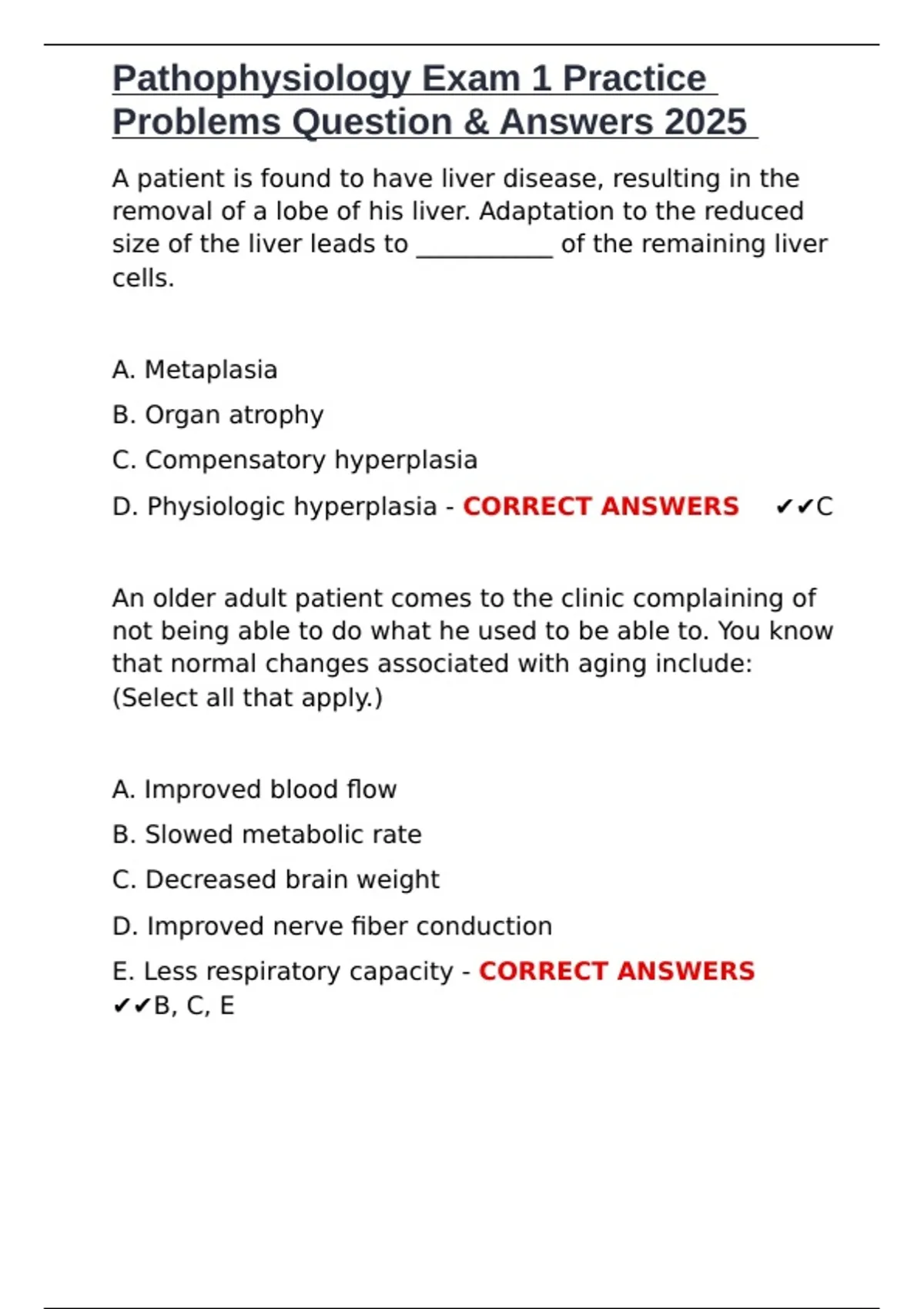 Pathophysiology Exam 1 Practice Problems Question & Answers 2025.docx