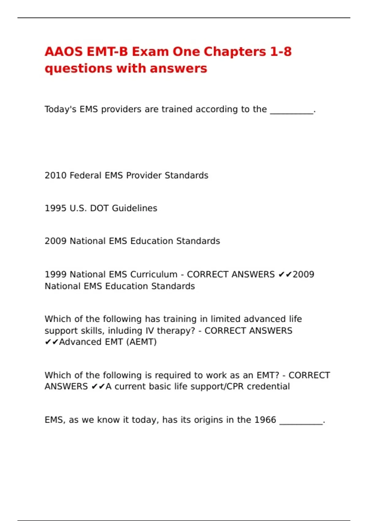 1999 National EMS Curriculum - CORRECT ANSWERS ✔✔2009