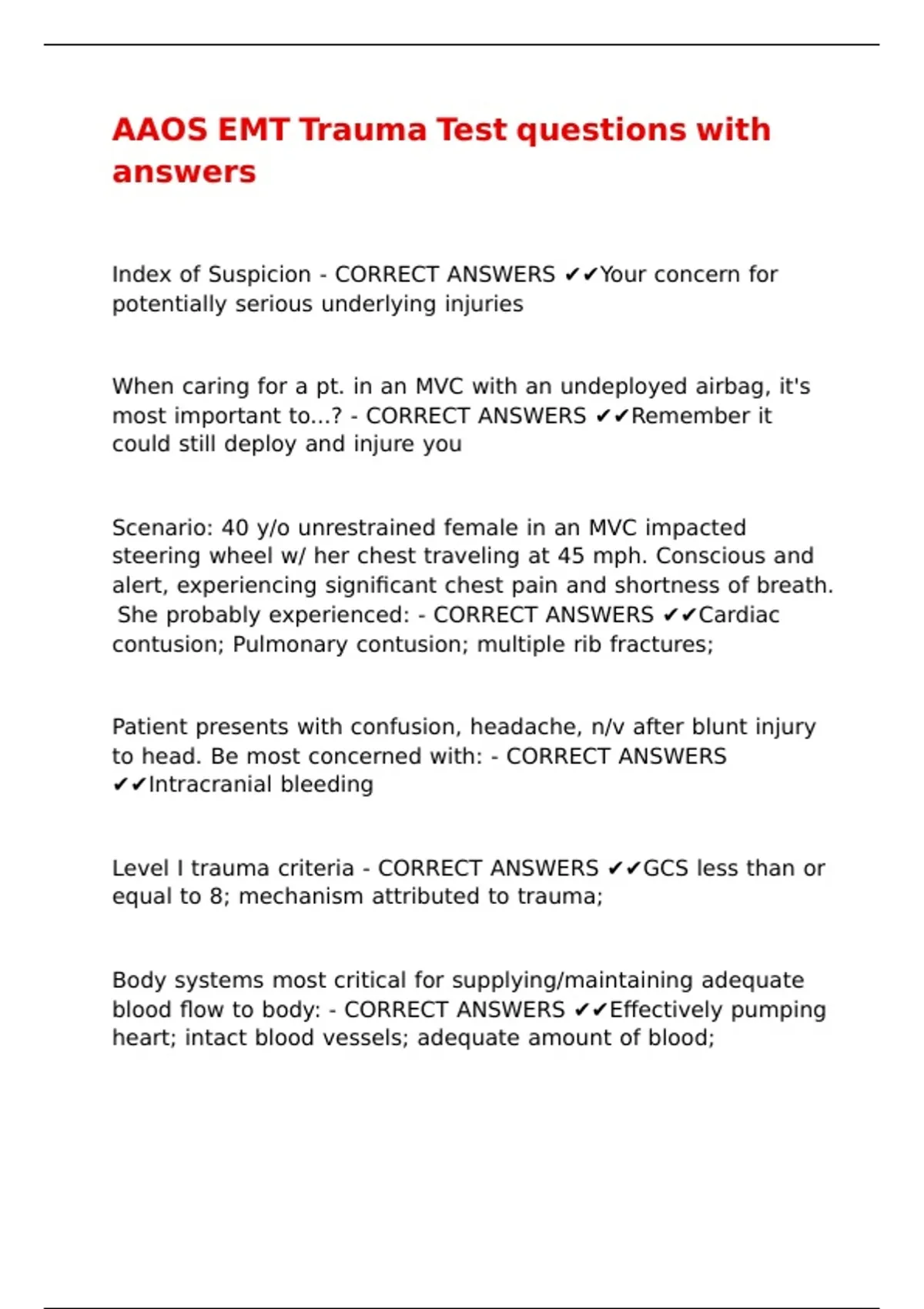 Level I trauma criteria - CORRECT ANSWERS ✔✔GCS less than or