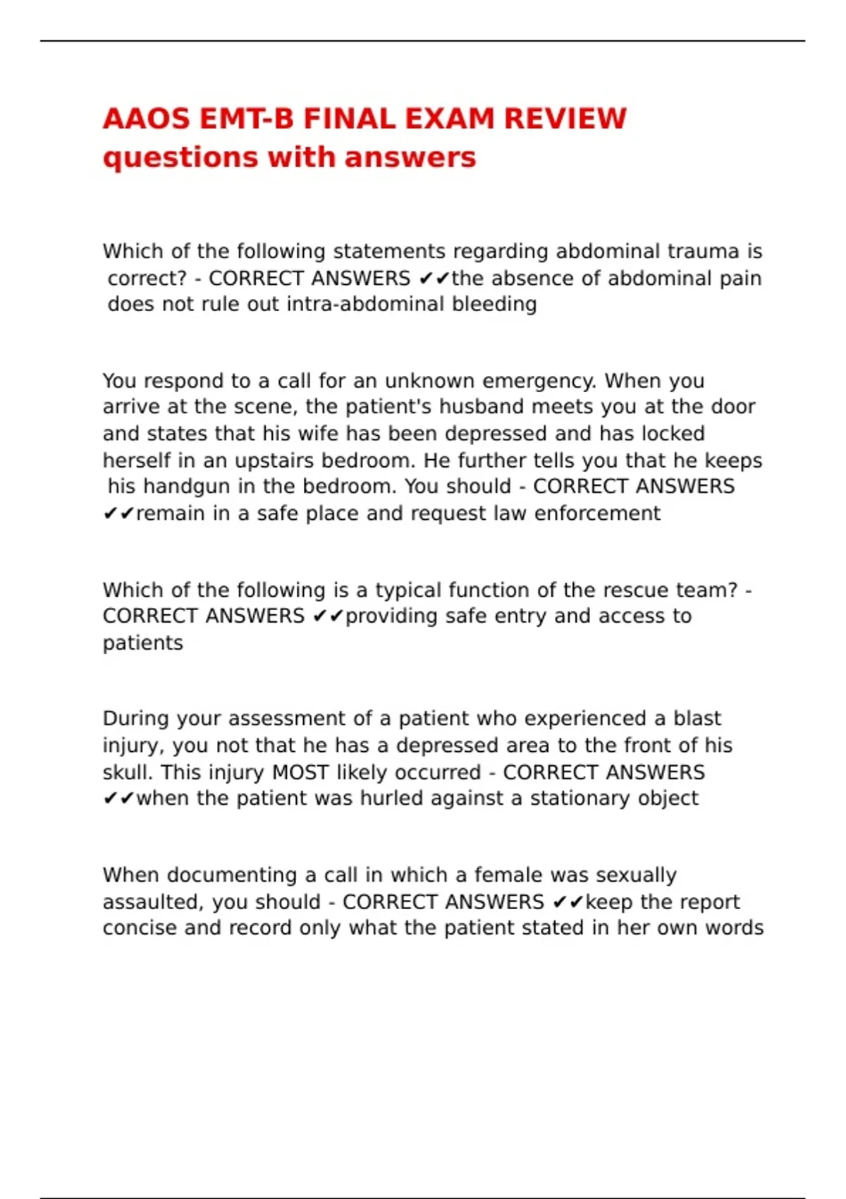AAOS EMT-B FINAL EXAM REVIEW questions with answers.