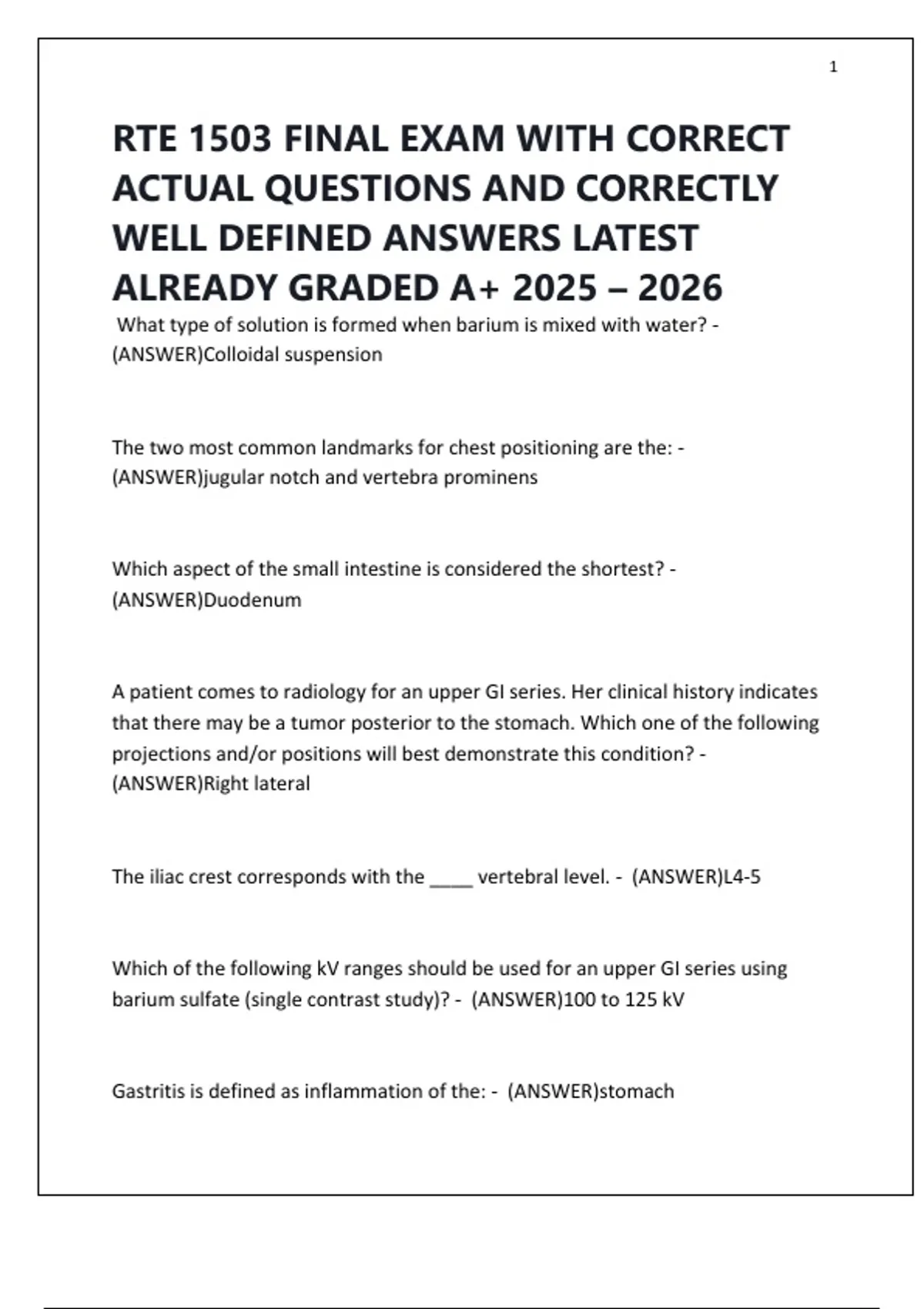 RTE 1503 FINAL EXAM WITH CORRECT ACTUAL QUESTIONS AND CORRECTLY WELL DEFINED ANSWERS LATEST ALREADY GRADED A+ 2025 – 2026