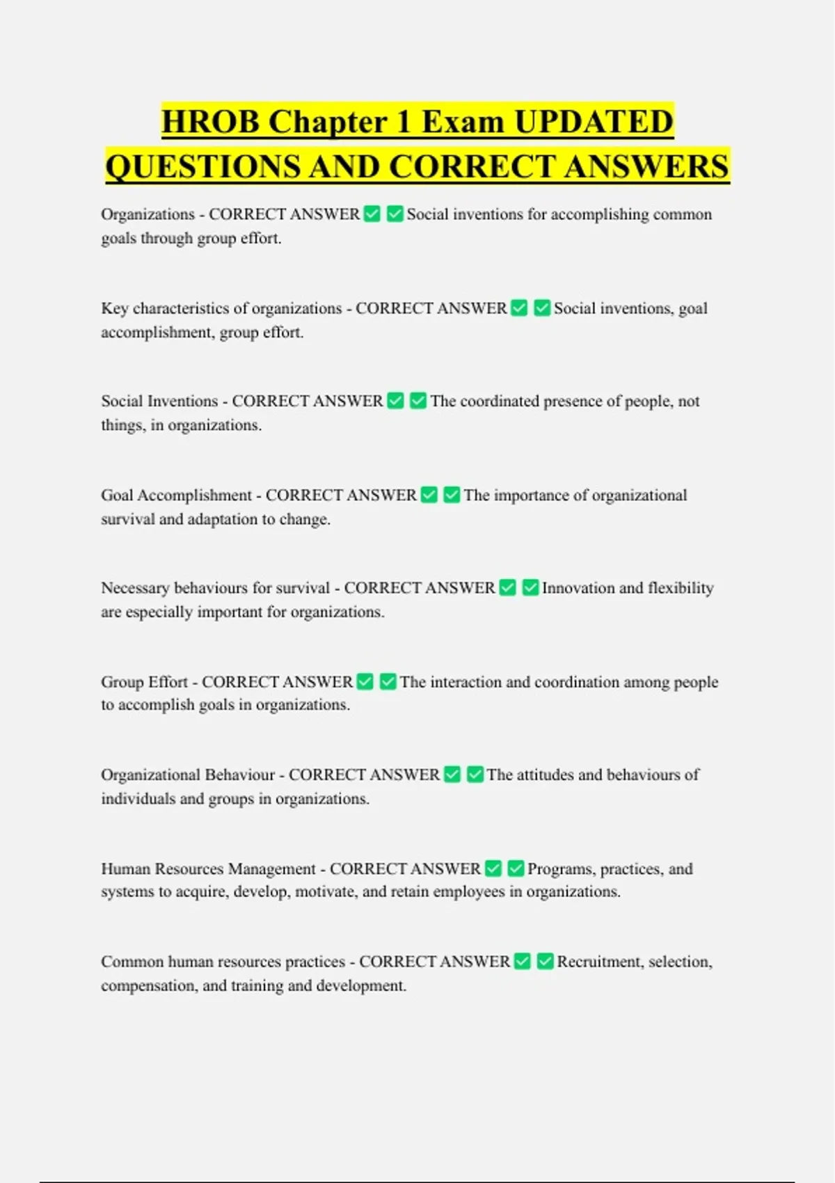 Human Resources Management - CORRECT ANSWER Programs, practices, and