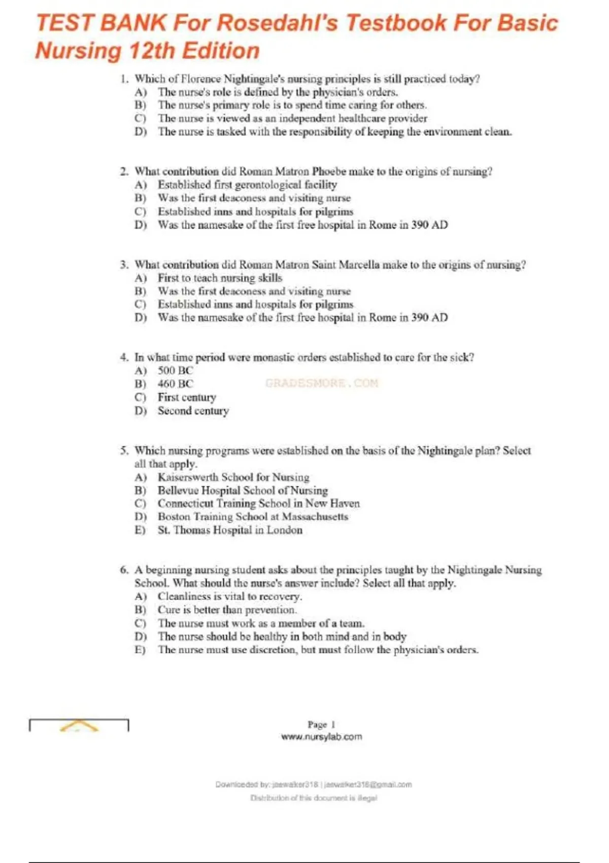Textbook of Basic Nursing 12th Edition ROSDAHL Test Bank Compressed Questions and Answers Guaranteed Success.pdf