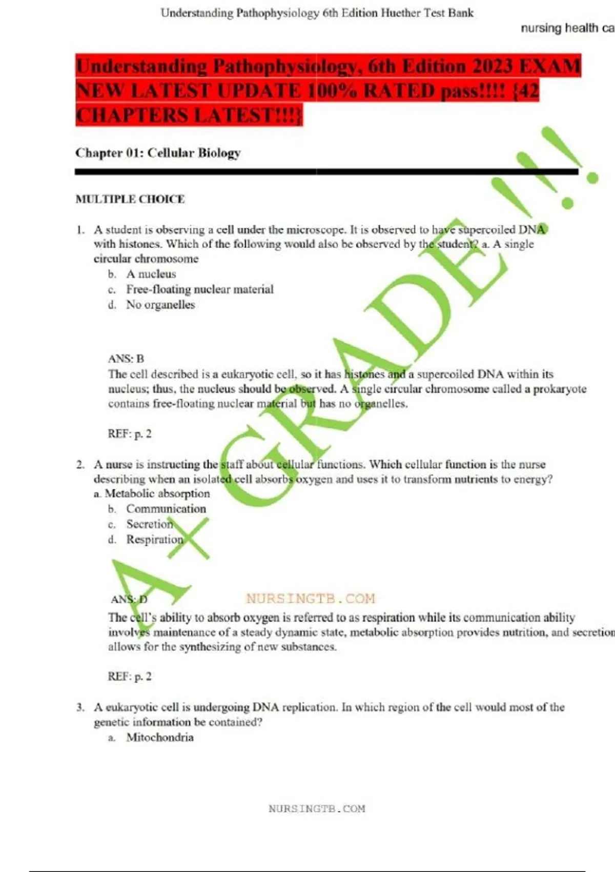 HUETHER and MCCANCES Understanding Pathophysiology Canadian Edition Power Kean Test Bank Compressed Questions & A