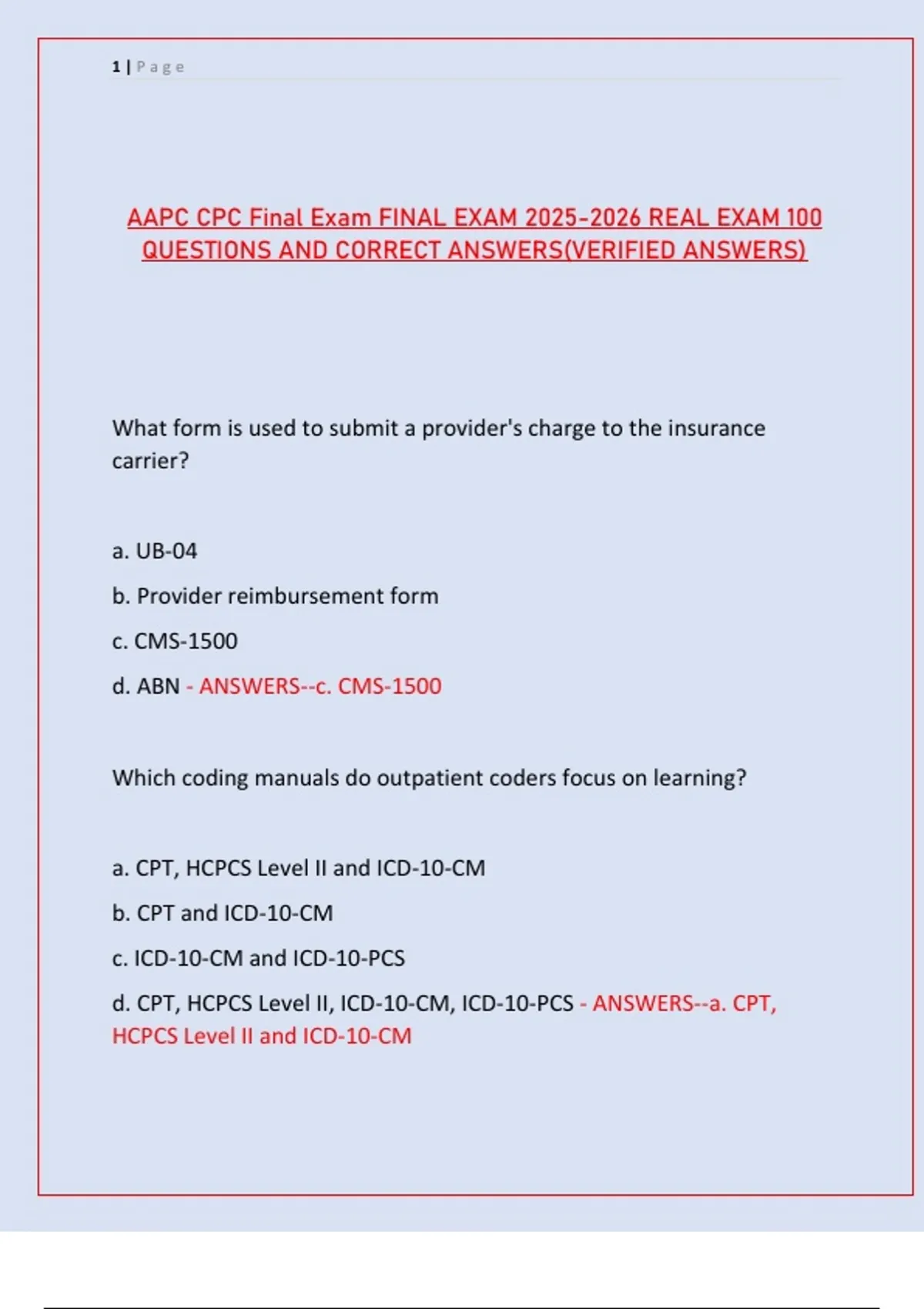 AAPC CPC Final Exam FINAL EXAM 2025-2026 REAL EXAM 100