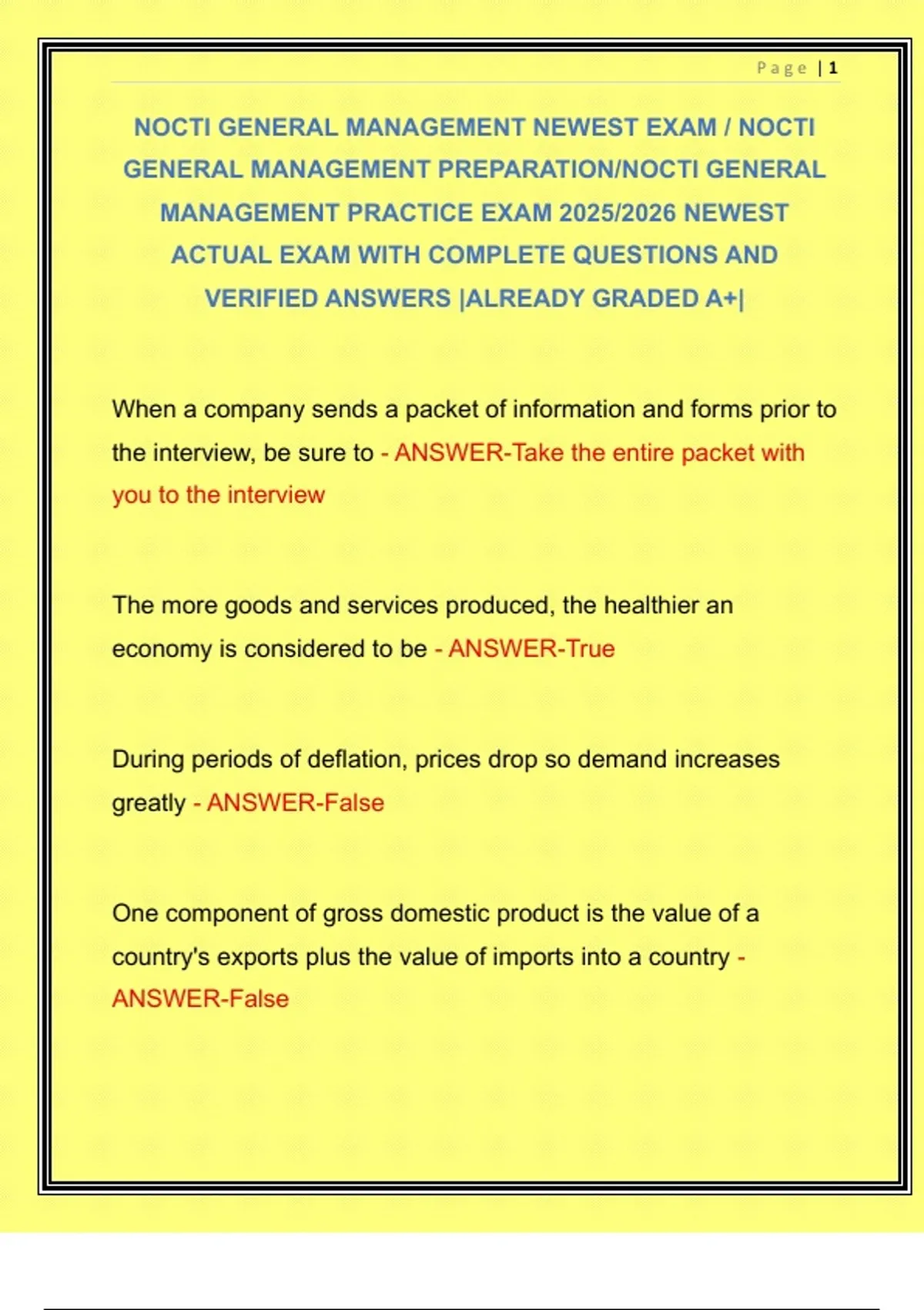 NOCTI GENERAL MANAGEMENT NEWEST EXAM / NOCTI