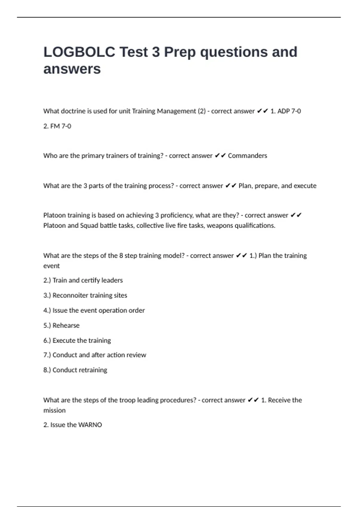 prepare unit training? - correct answer ✔✔ Troop leading procedures
