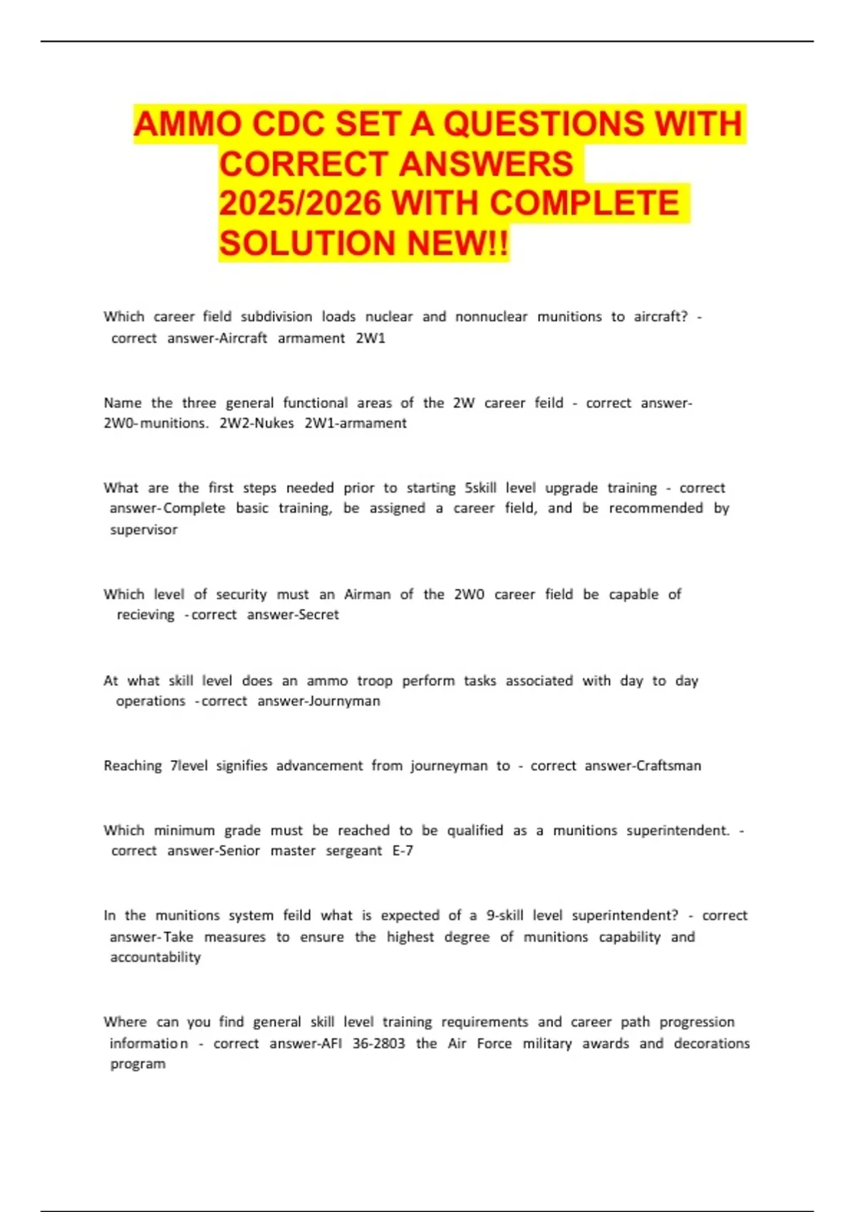 AMMO CDC SET A QUESTIONS WITH CORRECT ANSWERS 2025/2026 WITH COMPLETE SOLUTION NEW!!AMMO CDC SET A QUESTIONS WITH CORRECT ANSWERS 2025/2026 WITH COMPLETE SOLUTION NEW!!AMMO CDC SET A QUESTIONS WITH CORRECT ANSWERS 2025/2026 WITH COMPLETE SOLUTION NEW!!AMMO CDC SET A QUESTIONS WITH CORRECT ANSWERS 2025/2026 WITH COMPLETE SOLUTION NEW!!AMMO CDC SET A QUESTIONS WITH CORRECT ANSWERS 2025/2026 WITH COMPLETE SOLUTION NEW!!AMMO CDC SET A QUESTIONS WITH CORRECT ANSWERS 2025/2026 WITH COMPLETE SOLUTION NEW!!AMMO CDC SET A QUESTIONS WITH CORRECT ANSWERS 2025/2026 WITH COMPLETE SOLUTION NEW!!AMMO CDC SET A QUESTIONS WITH CORRECT ANSWERS 2025/2026 WITH COMPLETE SOLUTION NEW!!