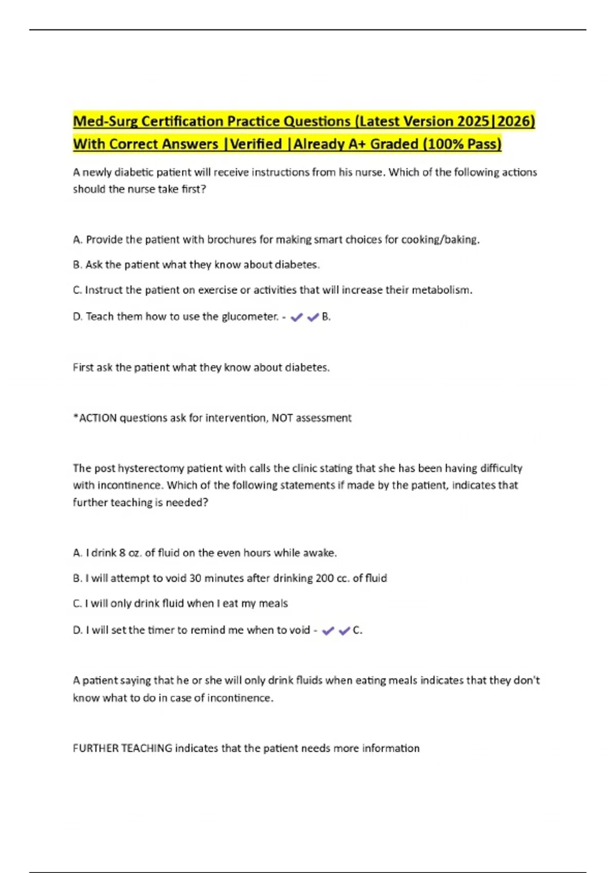 med surg certification practice questions latest