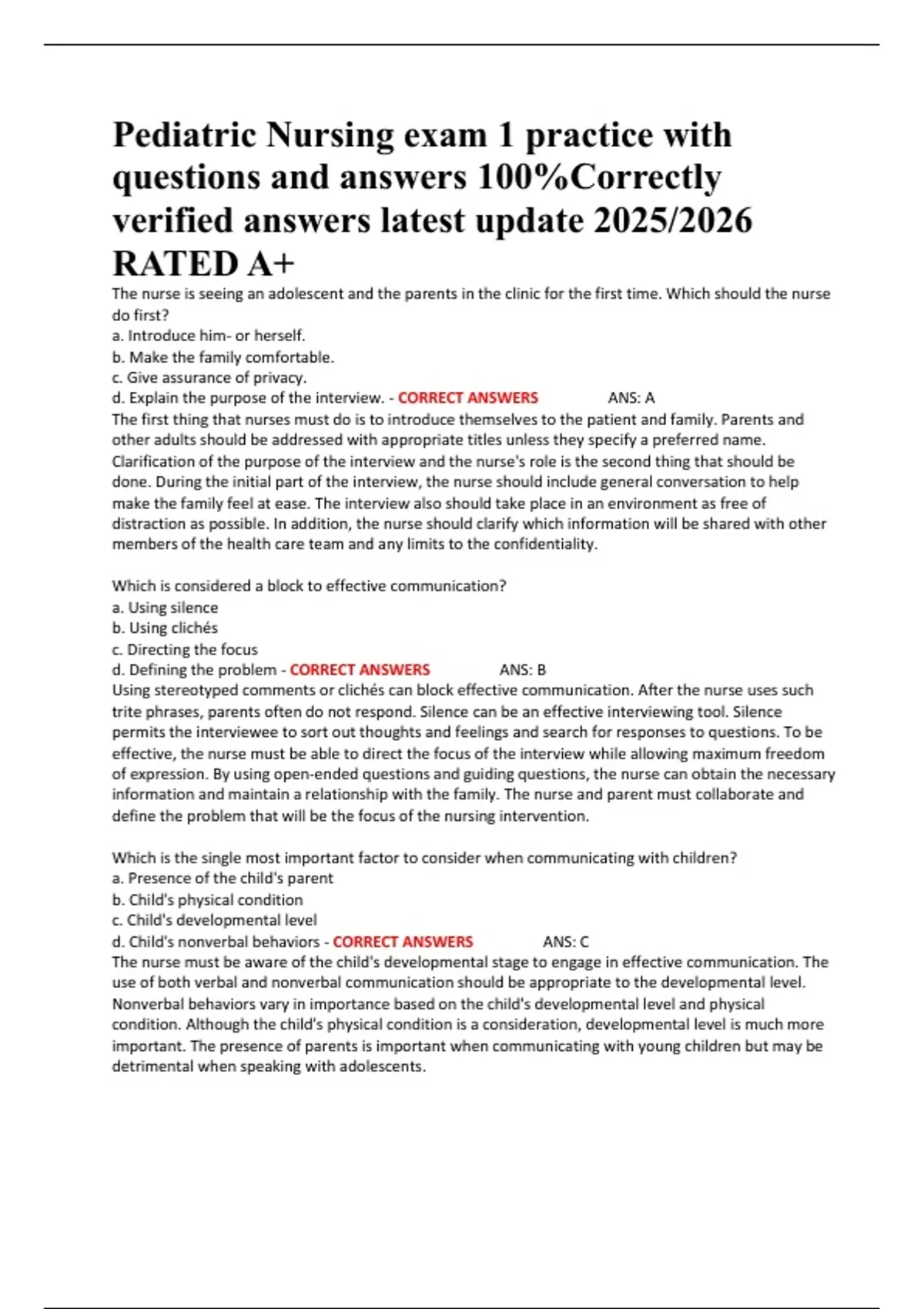 d. Assure the child that communication is private - CORRECT ANSWERS ANS: A
