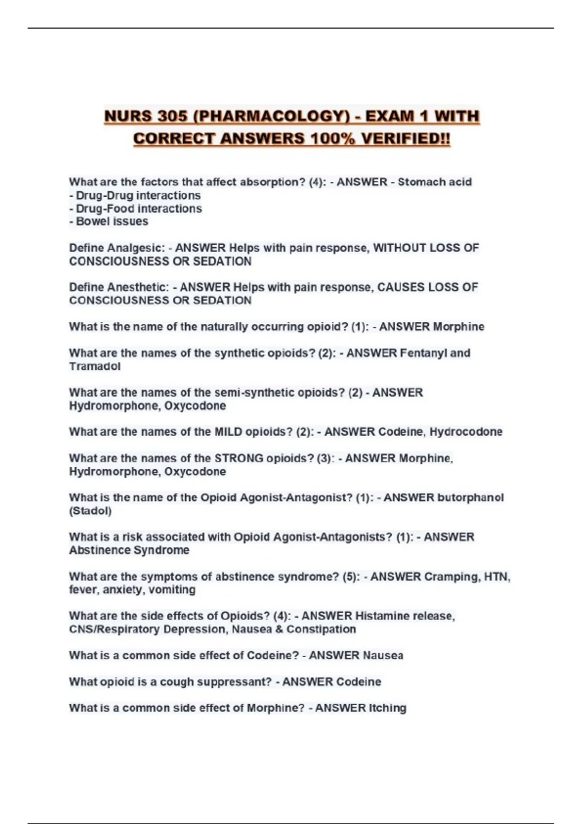 NURS 305 (PHARMACOLOGY) - EXAM 1 WITH CORRECT ANSWERS 100% VERIFIED!!...