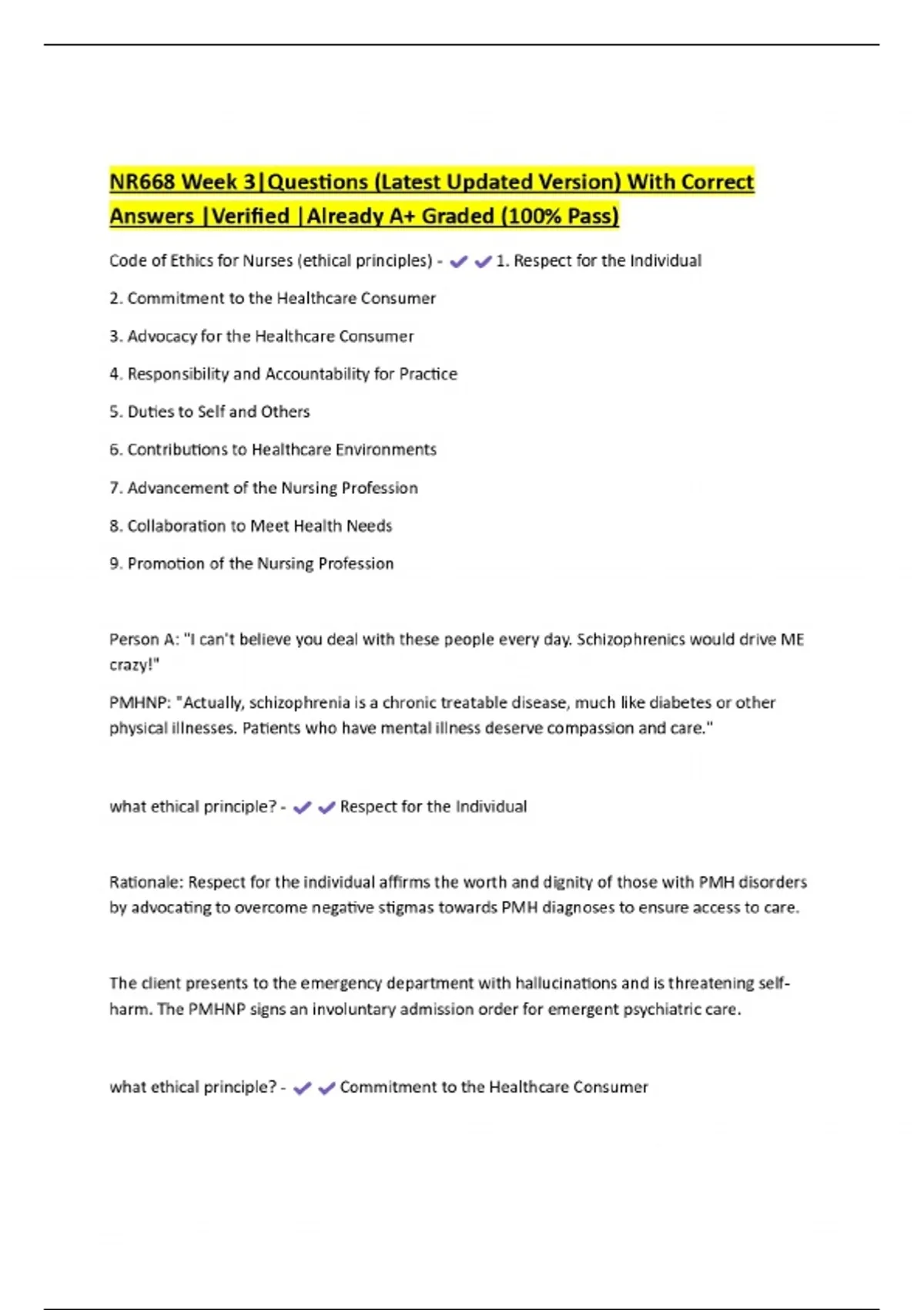 NR668 Week 3|Questions (Latest Updated Version) With Correct Answers |Verified |Already A+ Graded (100% Pass)