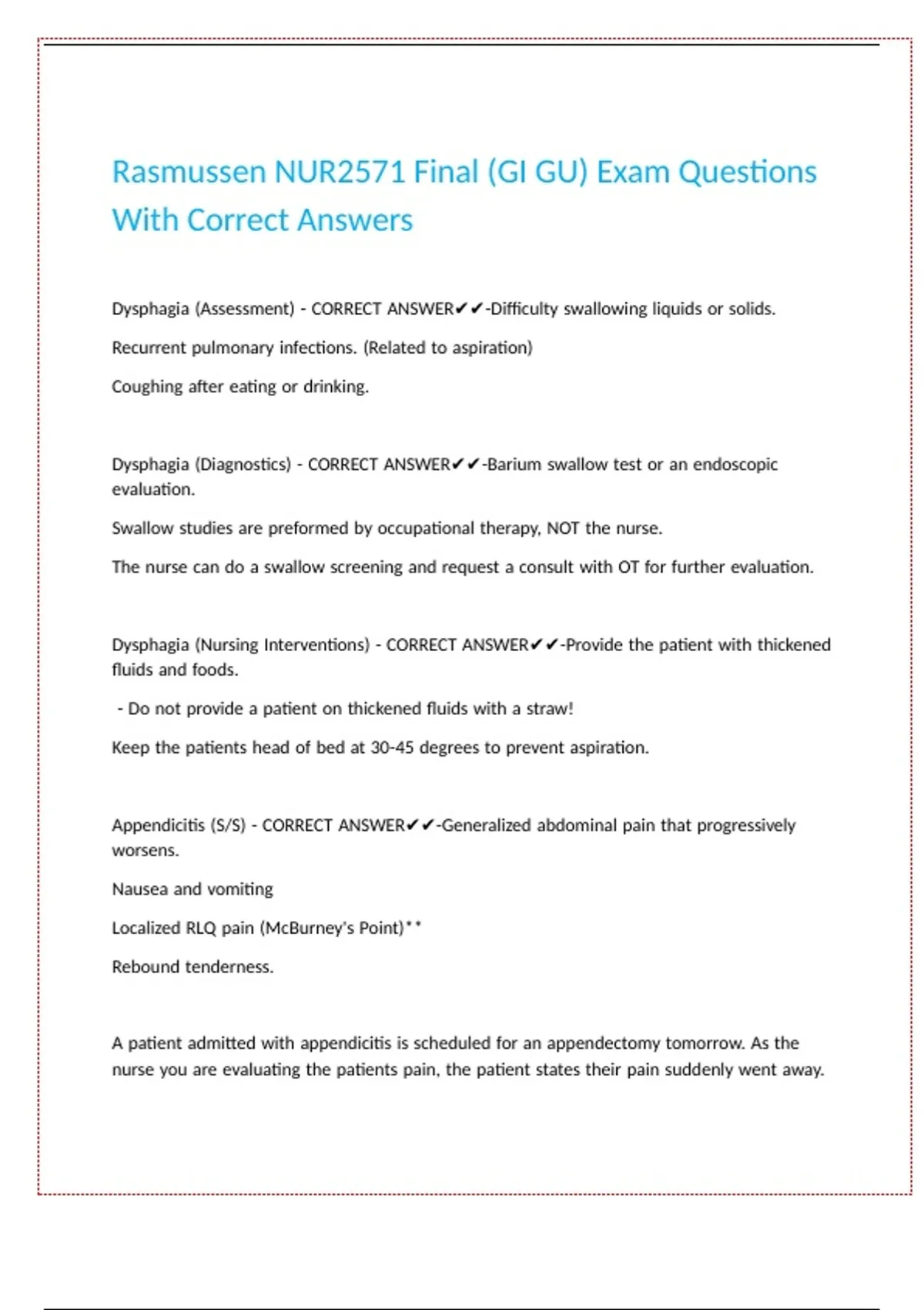 Rasmussen NUR2571 Final (GI/GU) Exam Questions With Correct Answers