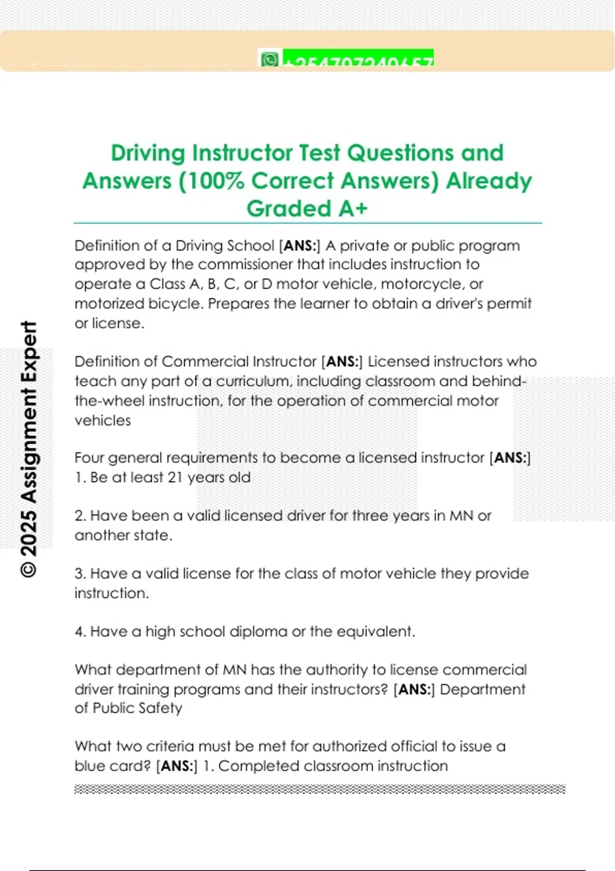 Driving Instructor Test Questions and