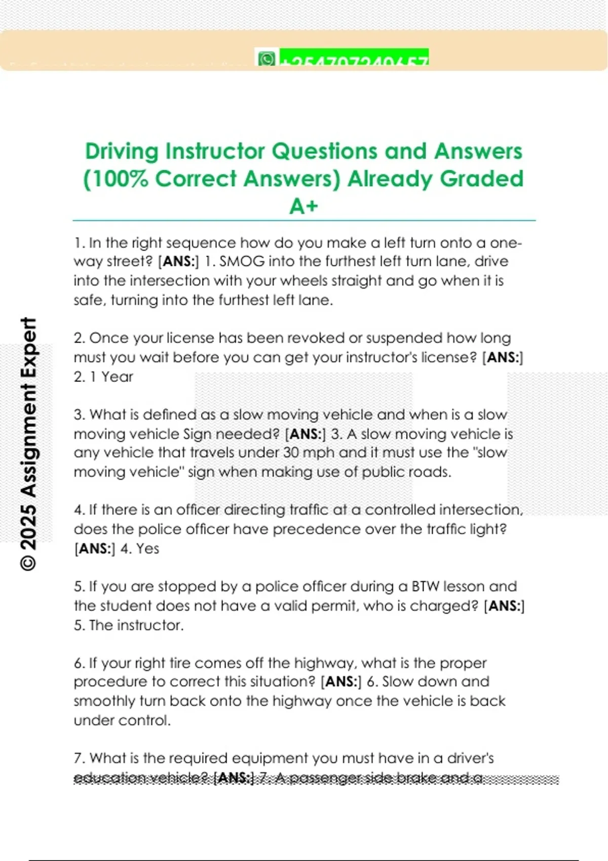 Driving Instructor Questions and Answers (100% Correct Answers) Already Graded A+