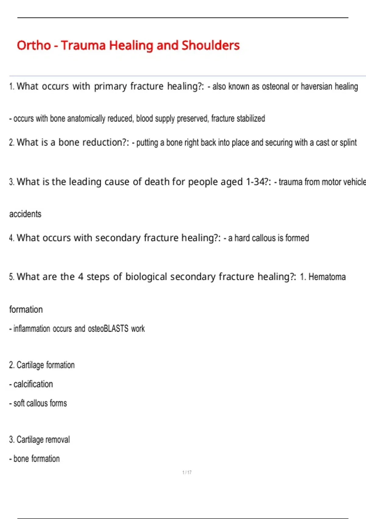 Ortho - Trauma Healing and Shoulders QUESTIONS AND CORRECT DETAILED ANSWERS WITH COMPLETE SOLUTIONS | GRADED A+
