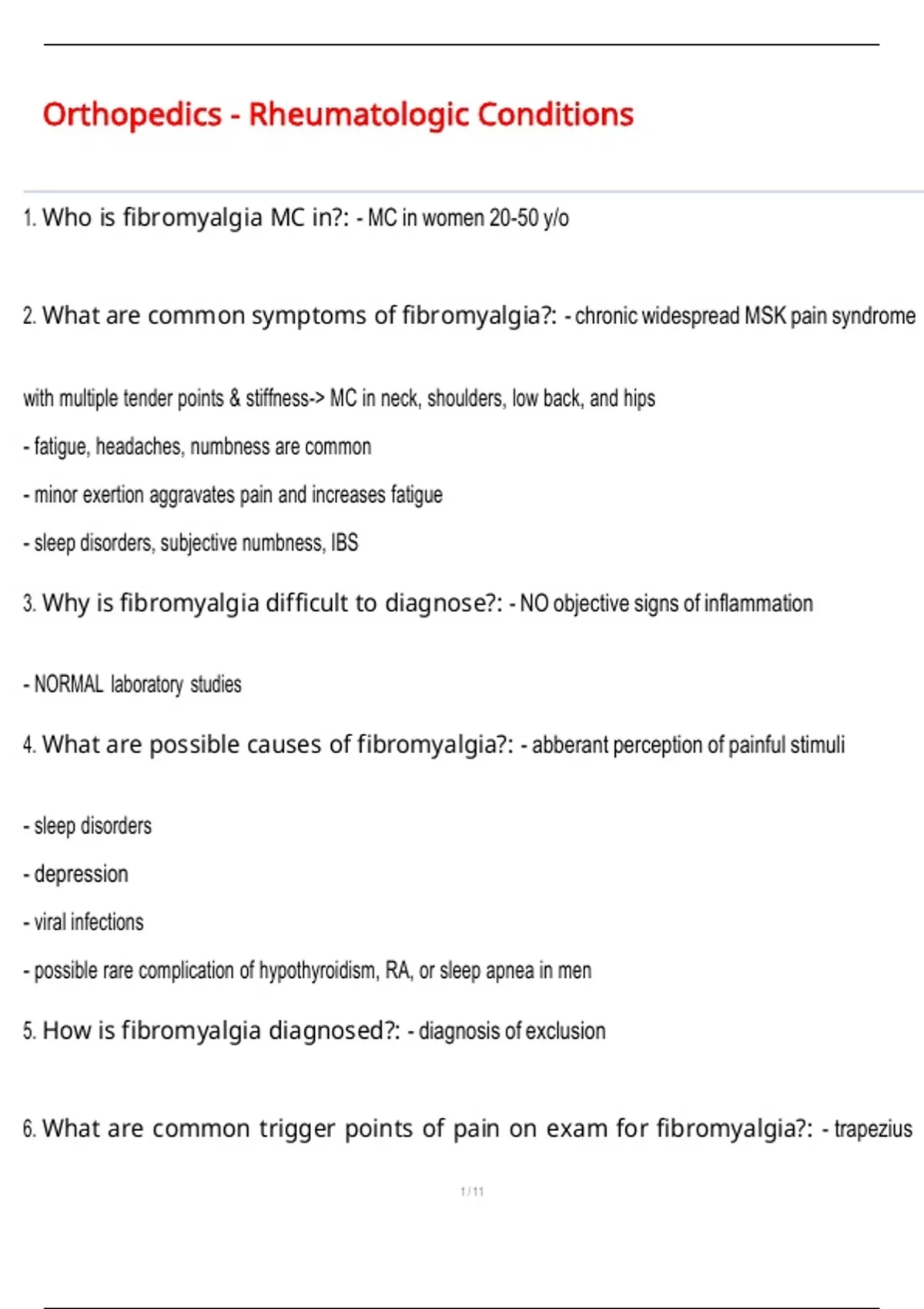 1. Who is fibromyalgia MC in?: - MC in women 20-50 y/o