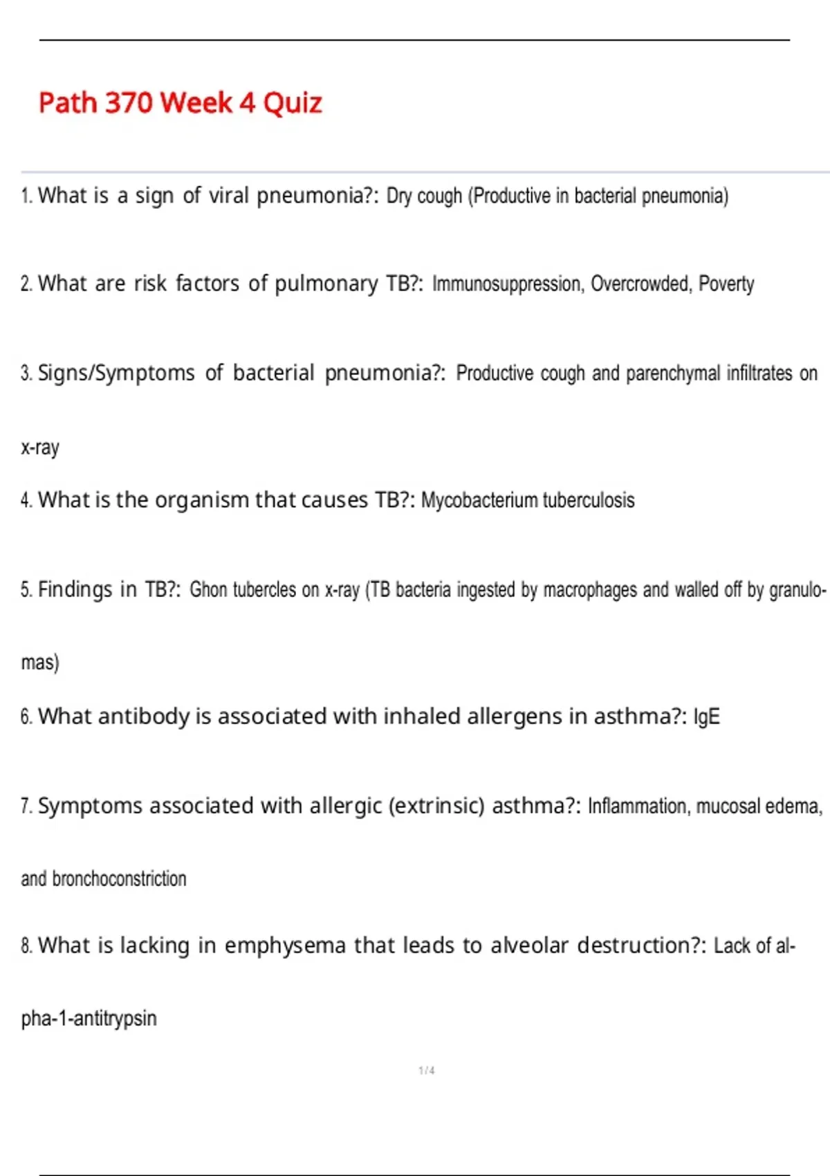 1. What is a sign of viral pneumonia?: Dry cough (Productive in bacterial pneumonia)