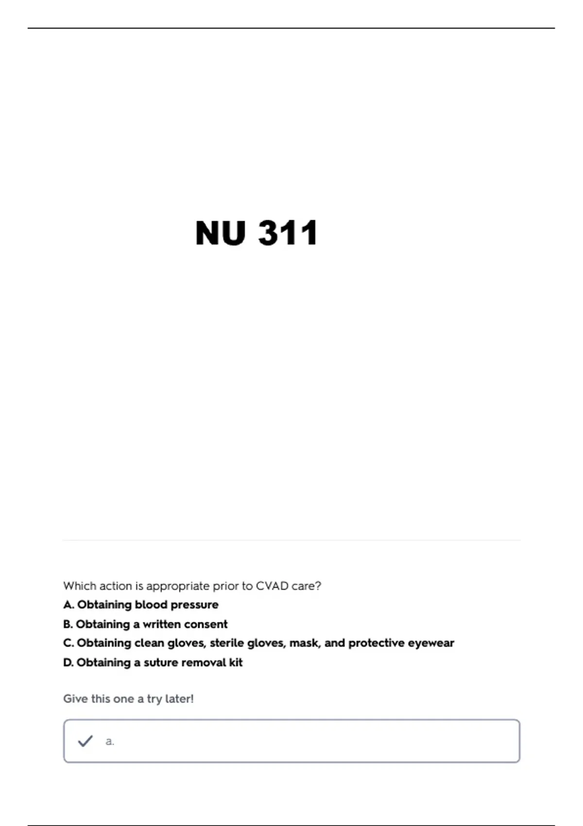 NU 311 QUIZ 6 QUESTIONS AND VERIFIED ANSWERS