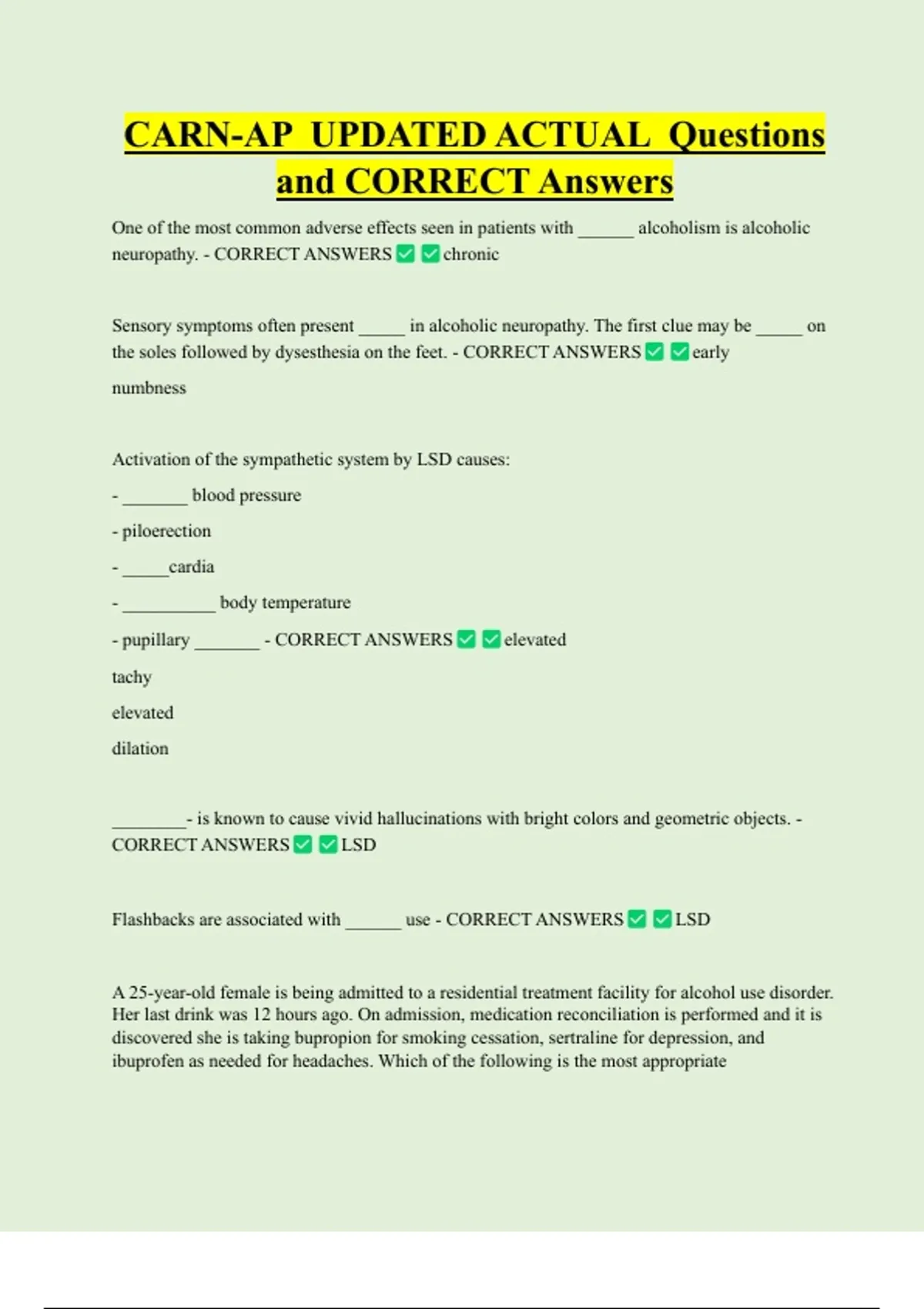 CORRECT ANSWERS LSD