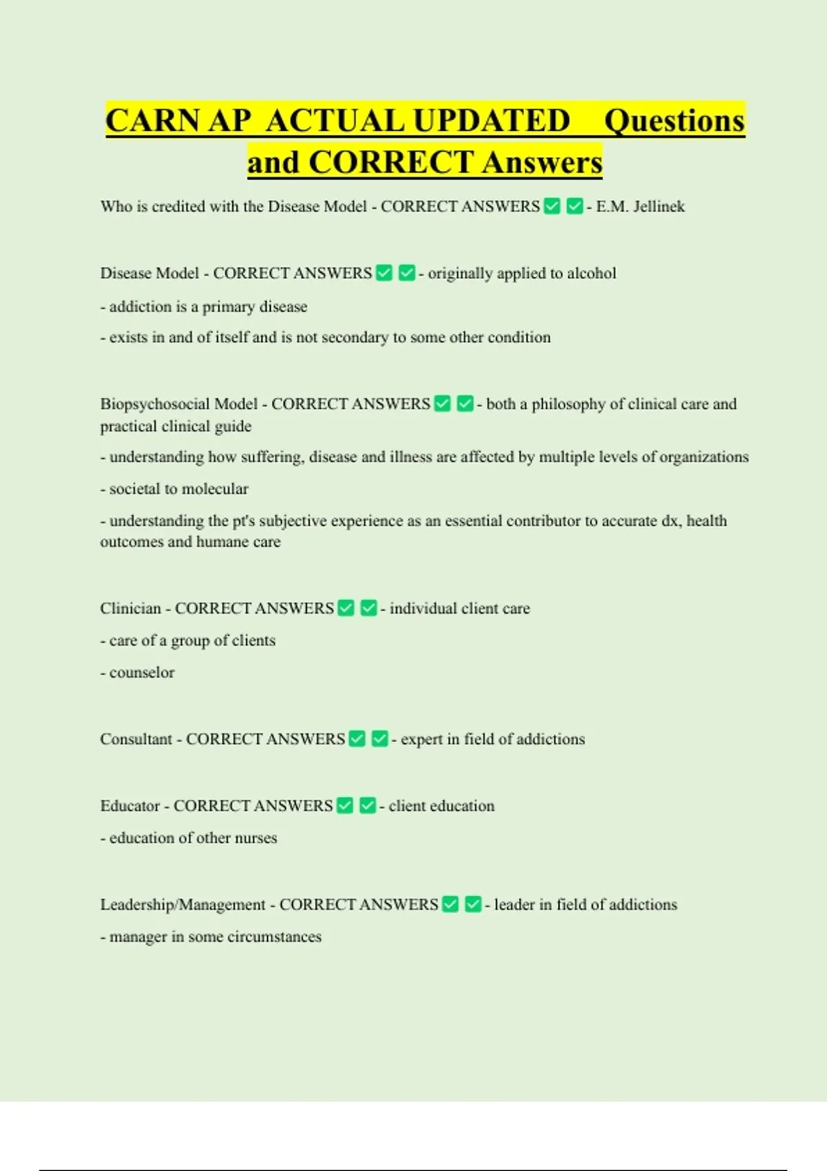 Consultant - CORRECT ANSWERS - expert in field of addictions