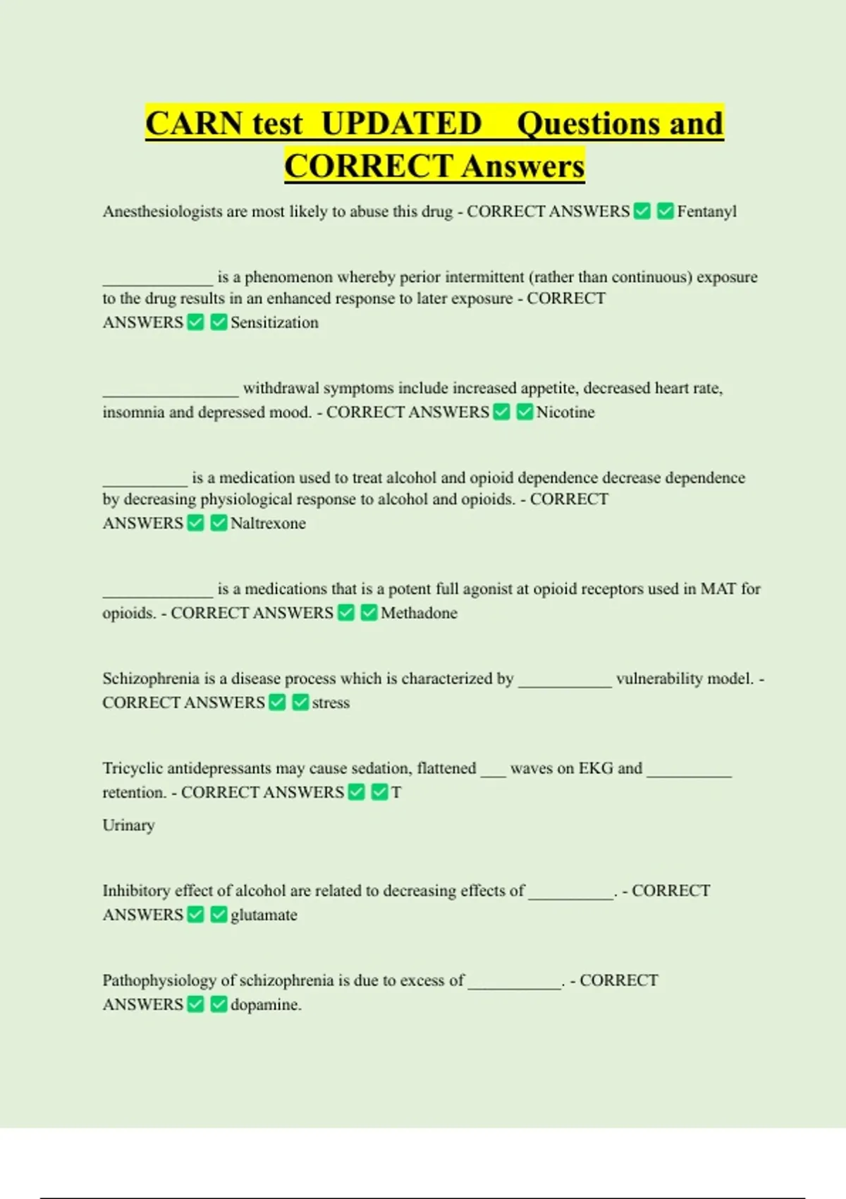 Anesthesiologists are most likely to abuse this drug - CORRECT ANSWERS Fentanyl