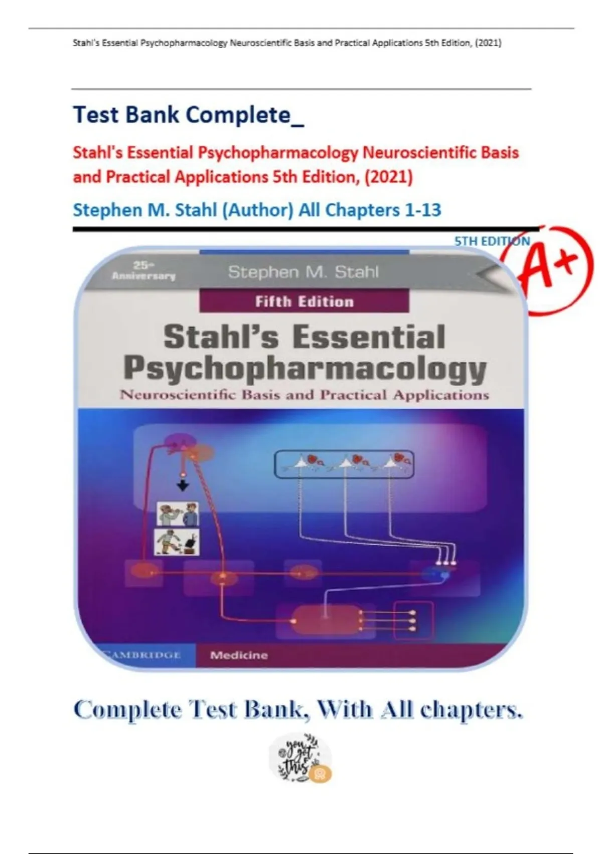 Stahl’s Essential Psychopharmacology: Neuroscientific Basis and Practical Applications (5th Edition, 2021) – Complete Test Bank and Study Guide