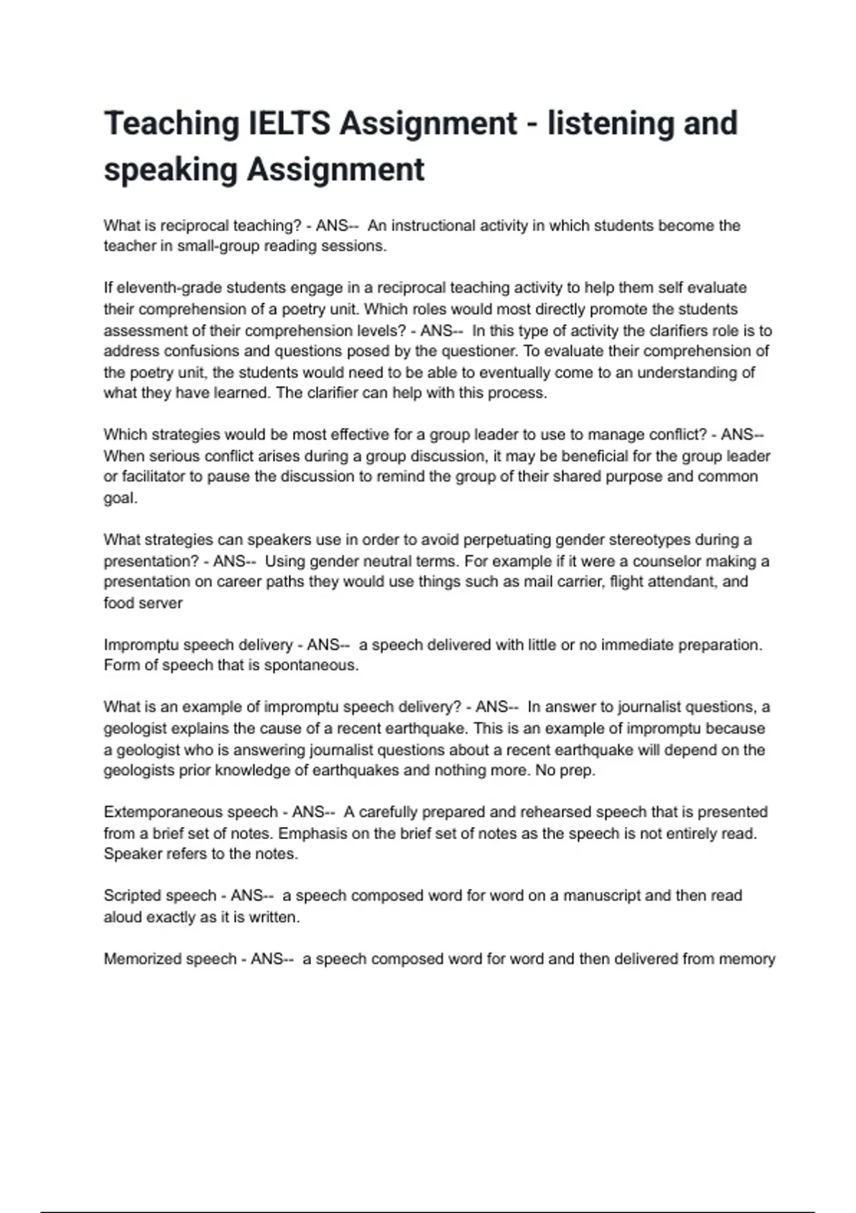speaking Assignment