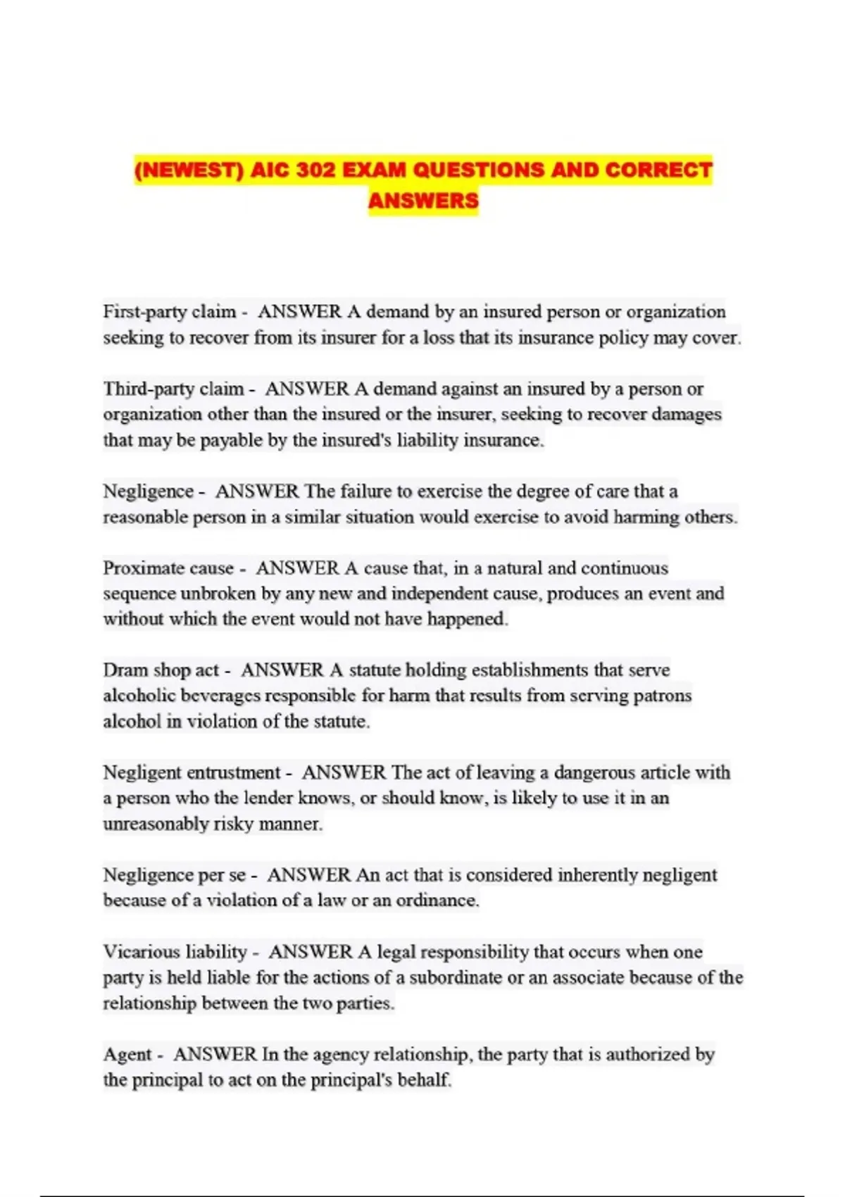 (NEWEST) AIC 302 EXAM QUESTIONS AND CORRECT ANSWERS...
