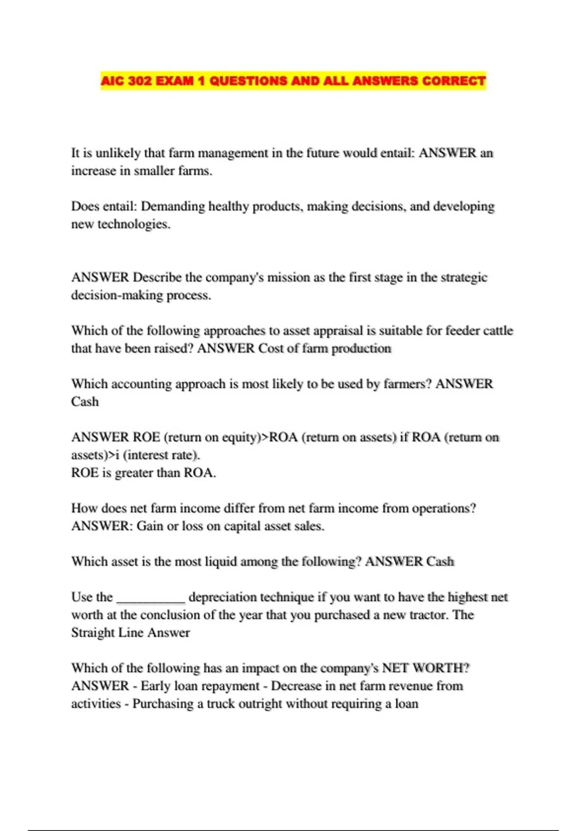AIC 302 EXAM 1 QUESTIONS AND ALL ANSWERS CORRECT...