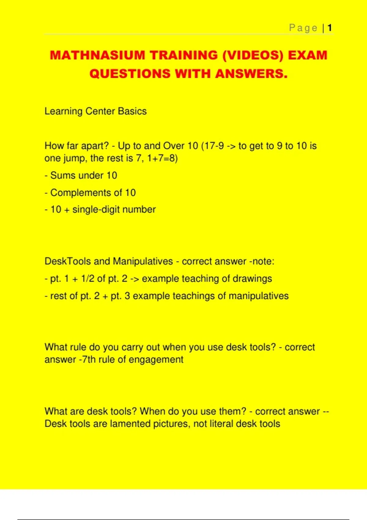 MATHNASIUM TRAINING (VIDEOS) EXAM QUESTIONS WITH ANSWERS.