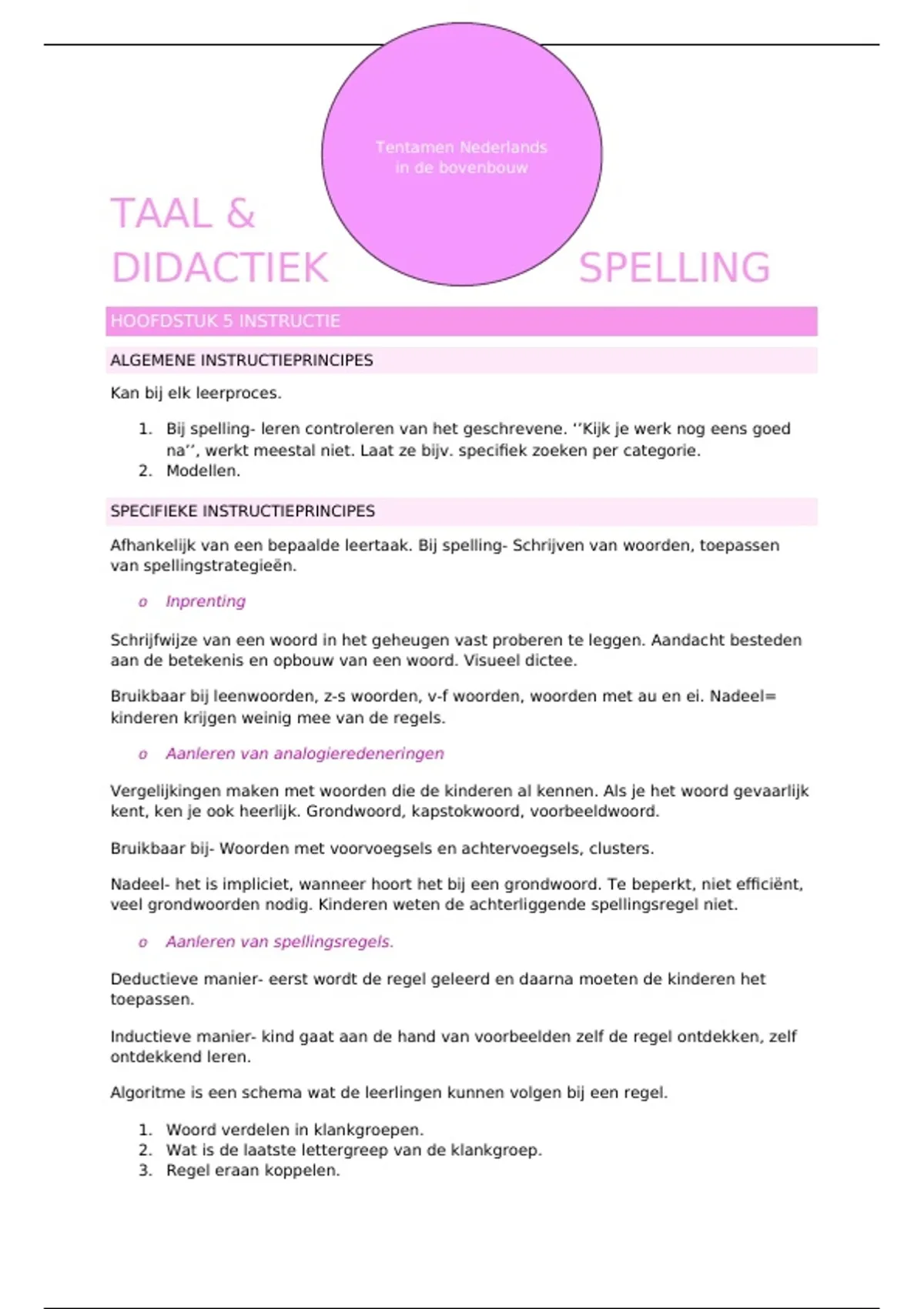 Ben jij Pabo-student en moet je de stof over Taal in de bovenbouw onder de knie krijgen? Deze samenvatting helpt je in één keer door de lesstof heen! Wat kun je verwachten? - Duidelijke, gestructureerde samenvatting van alle hoofdstukken - Gericht op de belangrijkste begrippen en theorieën - Perfect als voorbereiding op tentamens of het maken van opdrachten - Inclusief aantekeningen uit de colleges erin verwerkt. - Geschreven door een medestudent die met dit document in 1x is geslaagd Voor wie? - Studenten op de Pabo (jaar 2/3/4) - Iedereen die snel inzicht wil in taalontwikkeling en didactiek in de bovenbouw