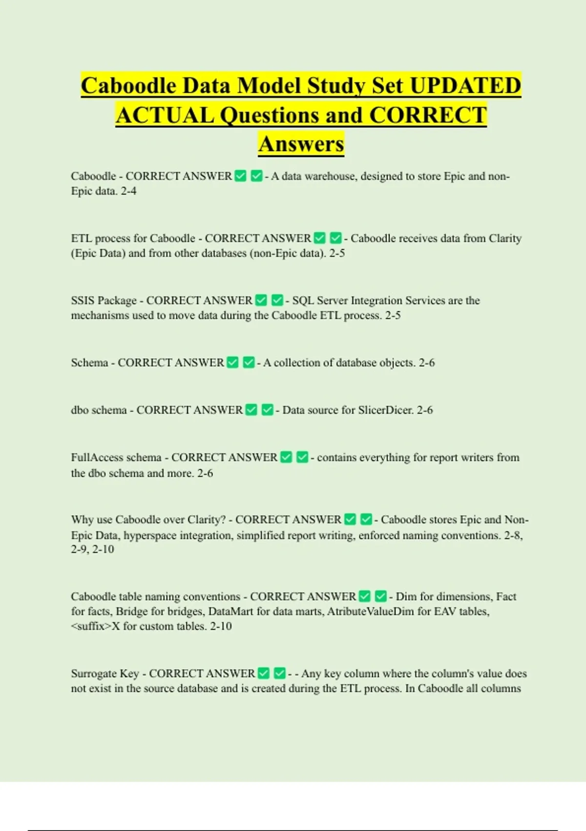 True. Naming conventions, such as Fact, are enforced in Caboodle. Study Checklist The Basics