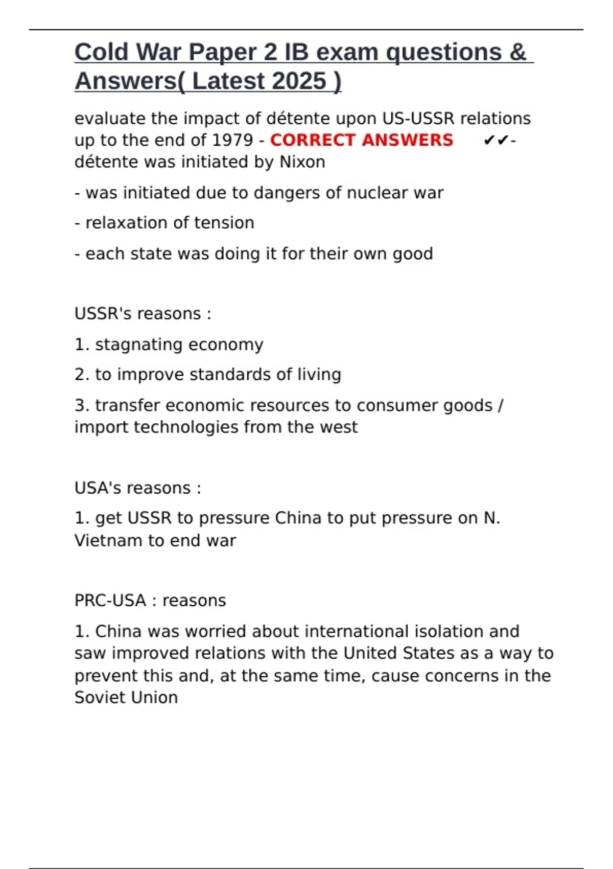 Cold War Paper 2 IB exam questions &
