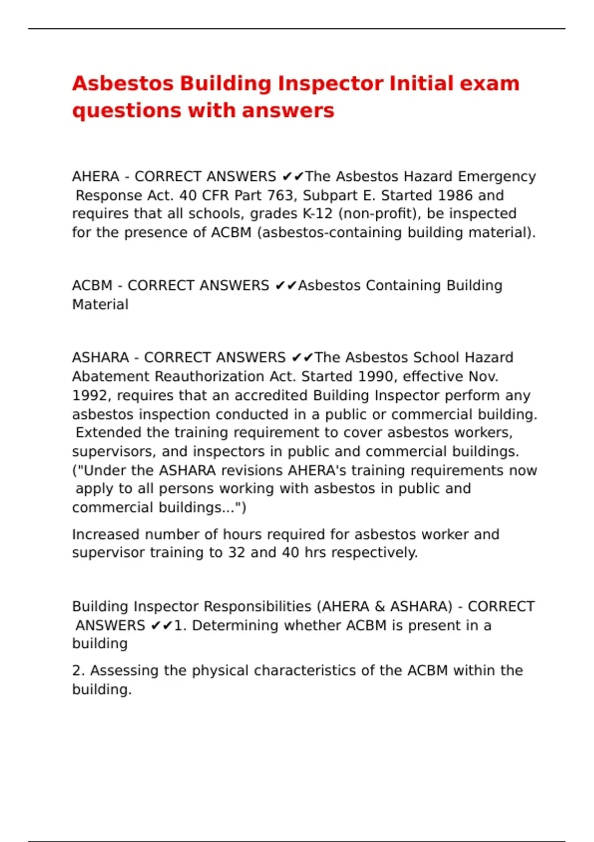 AHERA - CORRECT ANSWERS ✔✔The Asbestos Hazard Emergency
