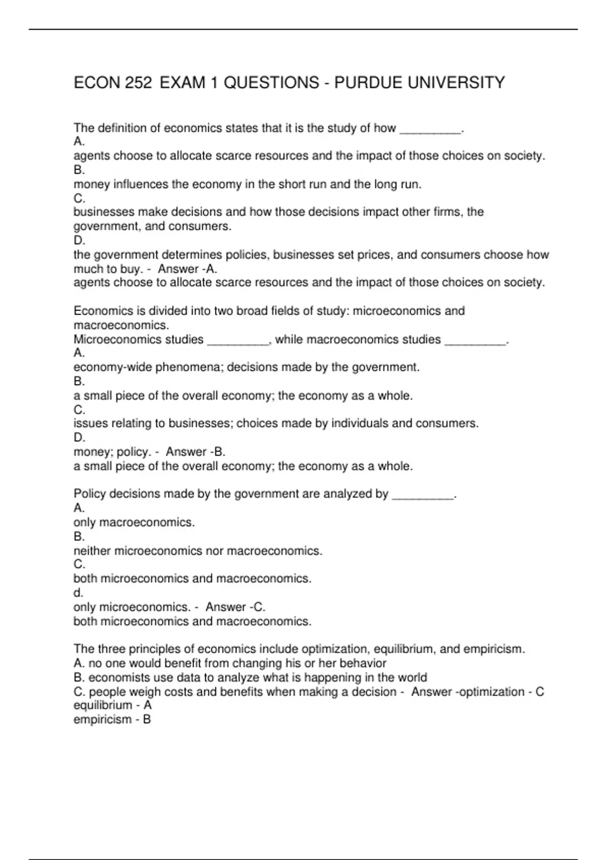 ECON 252 EXAM 1 QUESTIONS - PURDUE UNIVERSITY