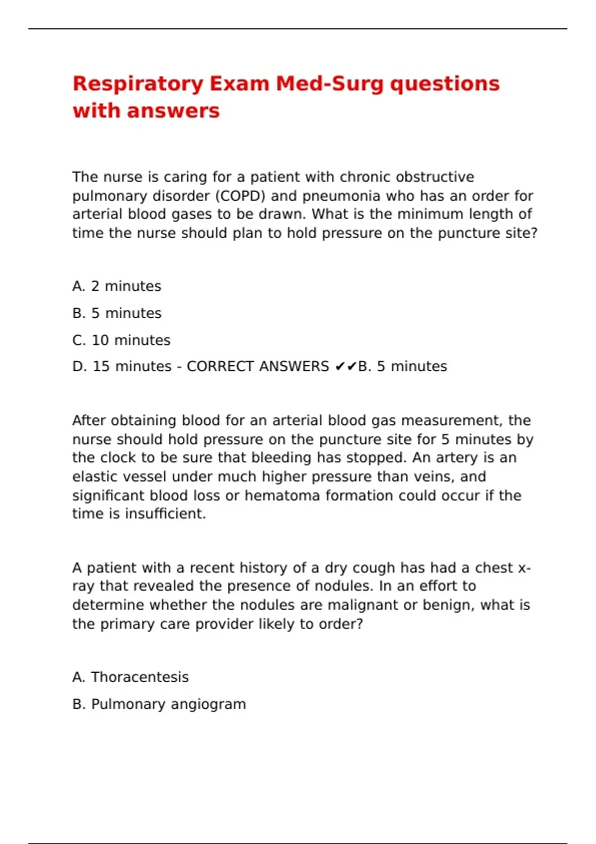 Respiratory Exam Med-Surg questions with answers.