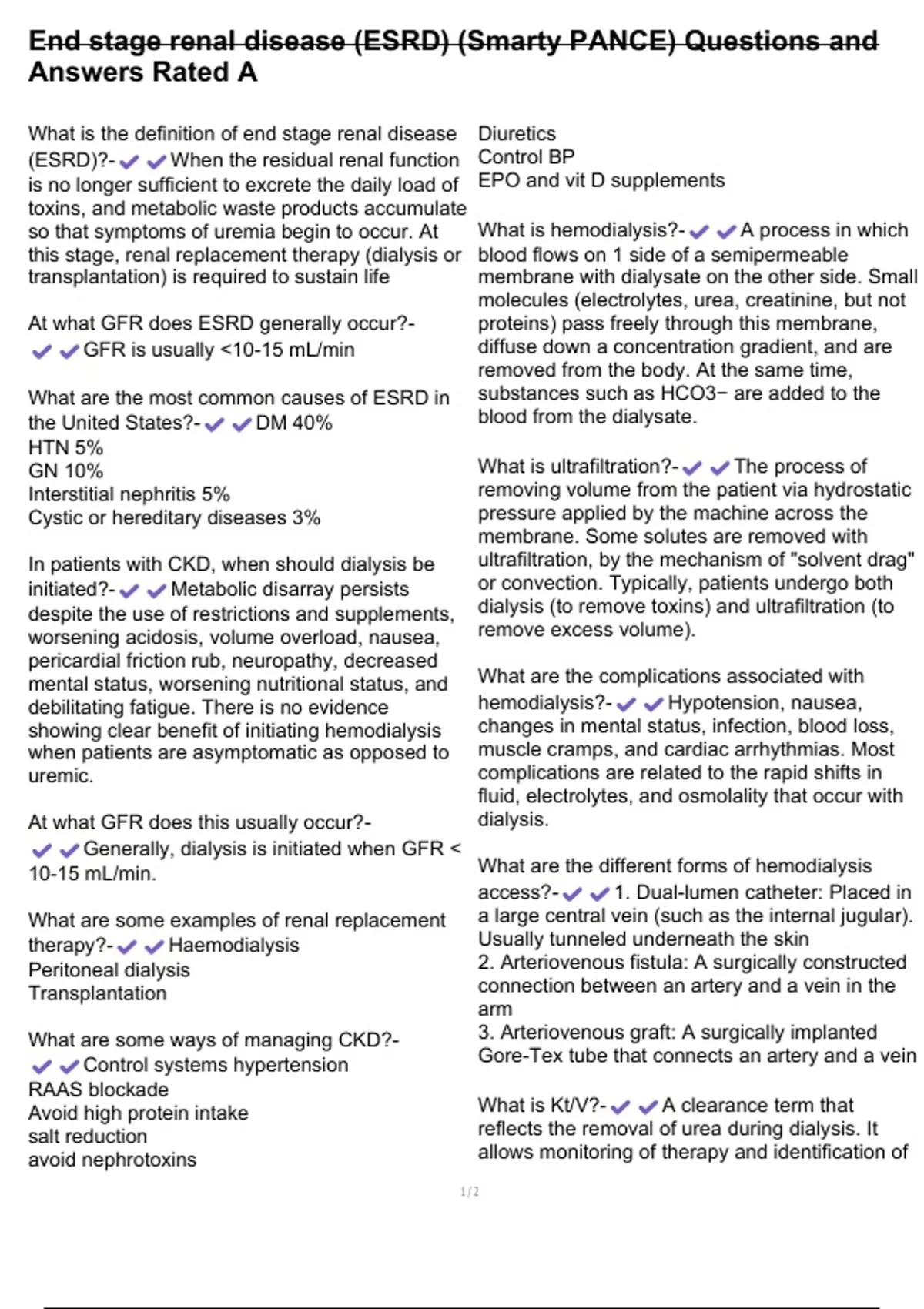 Avoid high protein intake What is Kt/V?- A clearance term that