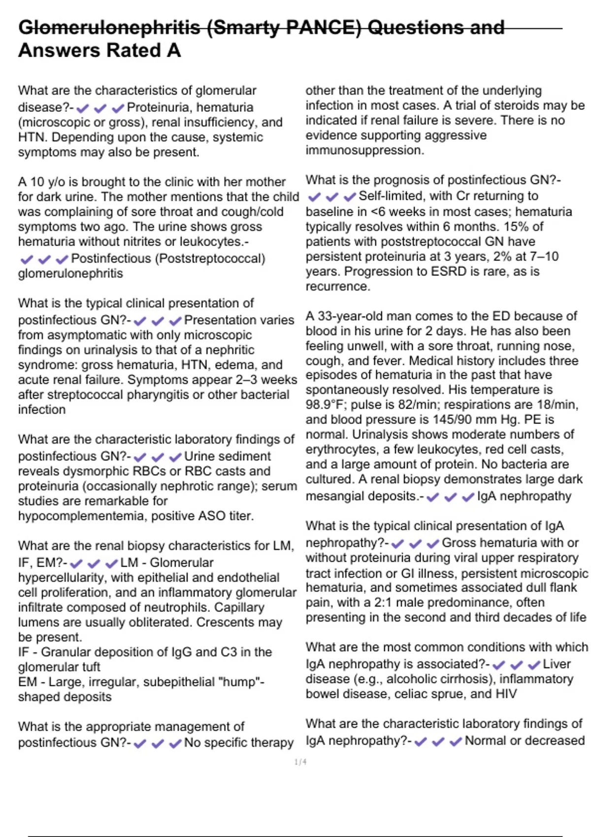 Glomerulonephritis (Smarty PANCE) Questions and Answers Rated A