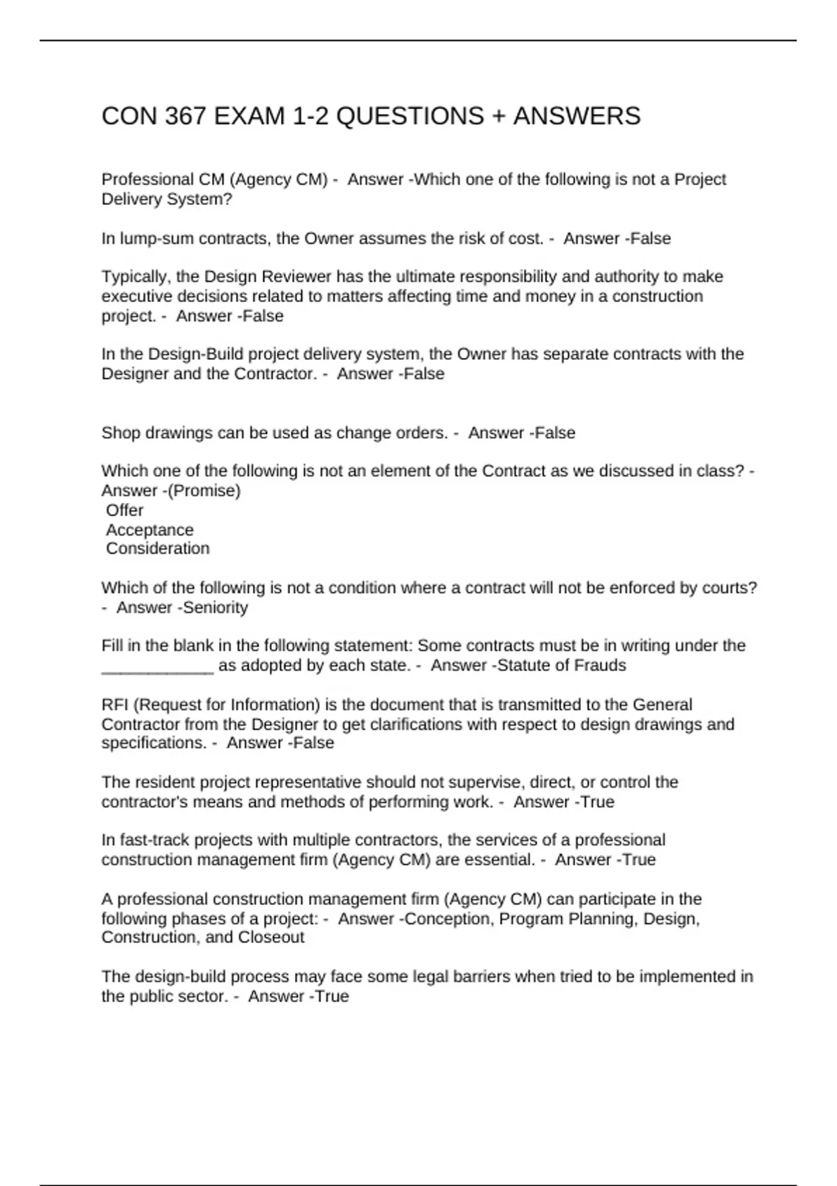 CON 367 EXAM 1-2 QUESTIONS + ANSWERS